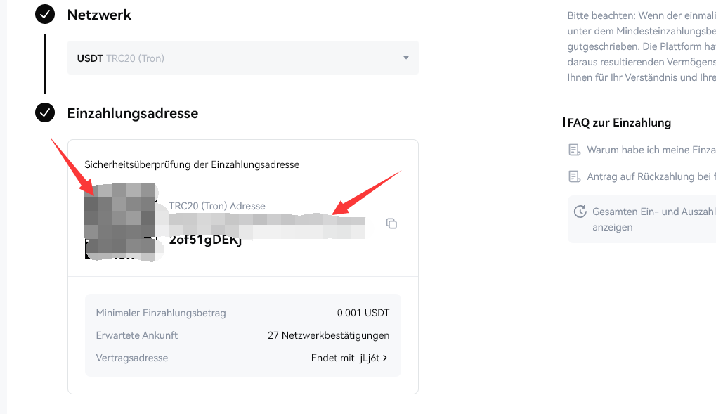 ** Bitte stellen Sie bei der Auswahl des Transfernetzwerks sicher, dass das ausgewählte Netzwerk mit der Auszahlungsplattform übereinstimmt. Wenn Sie sich beispielsweise für das TRC20-Netzwerk auf KCEX entscheiden, sollten Sie auch für Auszahlungen auf der Auszahlungsplattform das TRC20-Netzwerk auswählen. Die Auswahl des falschen Netzwerks führt zu einem Verlust von Geldern.