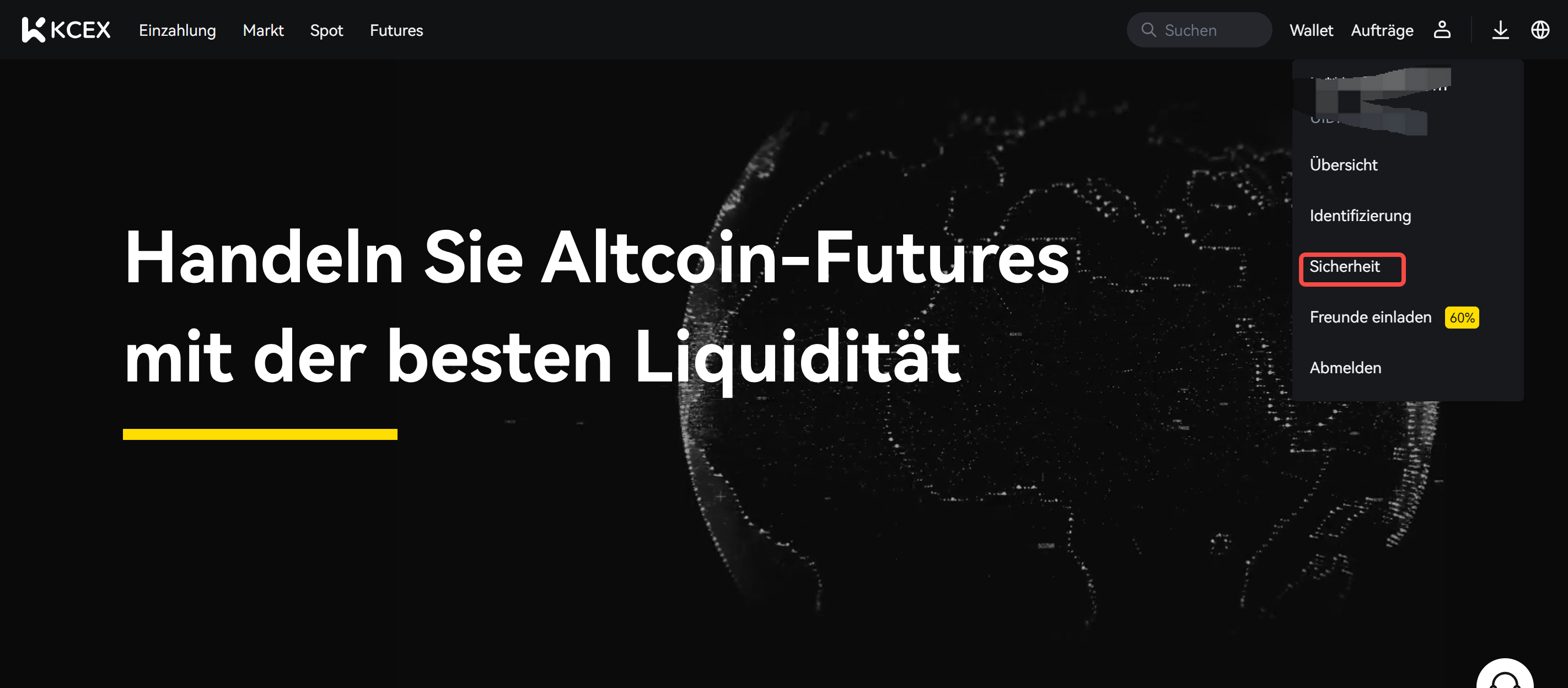 1. Melden Sie sich auf der offiziellen KCEX-Website an, bewegen Sie den Mauszeiger über das Benutzersymbol und klicken Sie auf [Sicherheit].