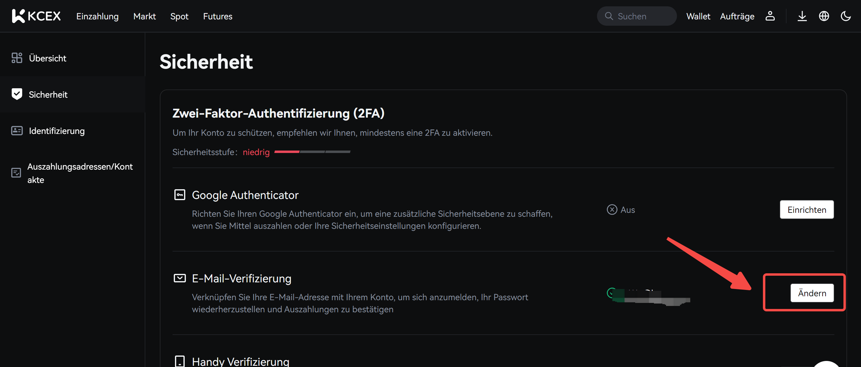 2. Klicken Sie im Abschnitt „E-Mail-Bestätigung“ auf „Ändern“.