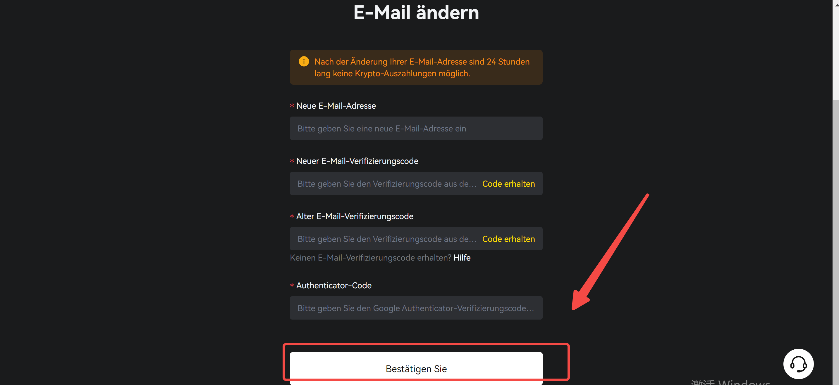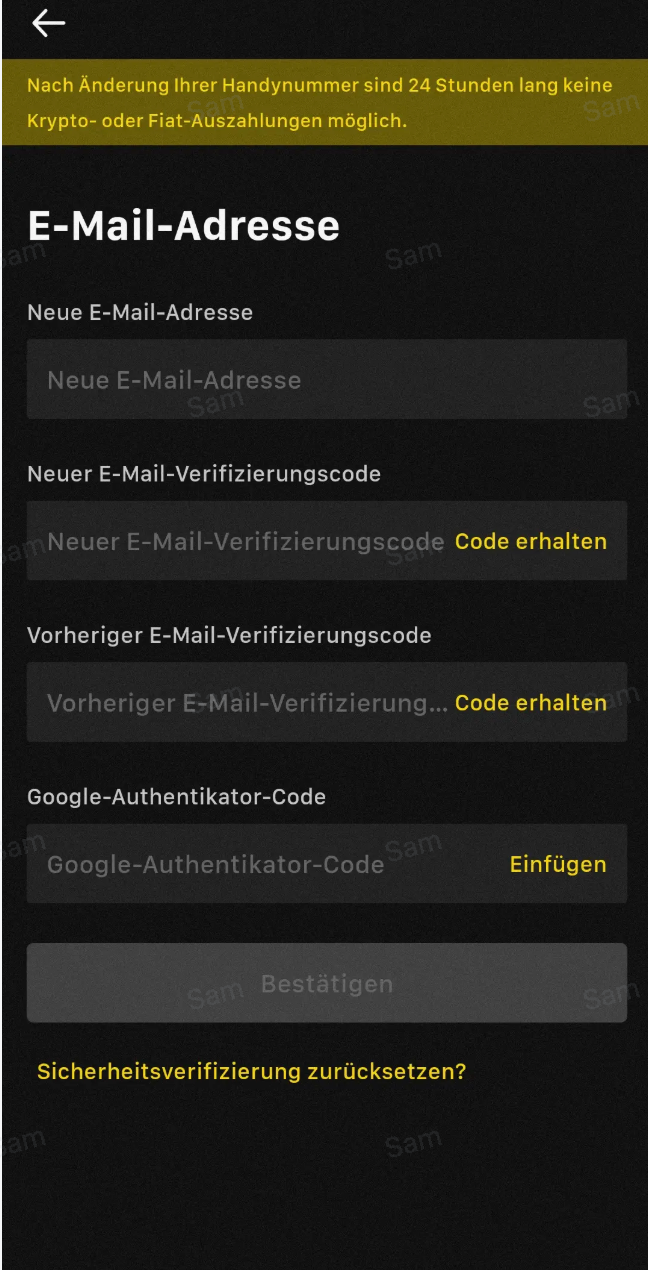 3. Geben Sie Ihre neue E-Mail-Adresse, den neuen E-Mail-Bestätigungscode, den alten E-Mail-Bestätigungscode und den Google-Bestätigungscode/SMS-Bestätigungscode ein und klicken Sie dann auf [Bestätigen], um den Änderungsvorgang abzuschließen.