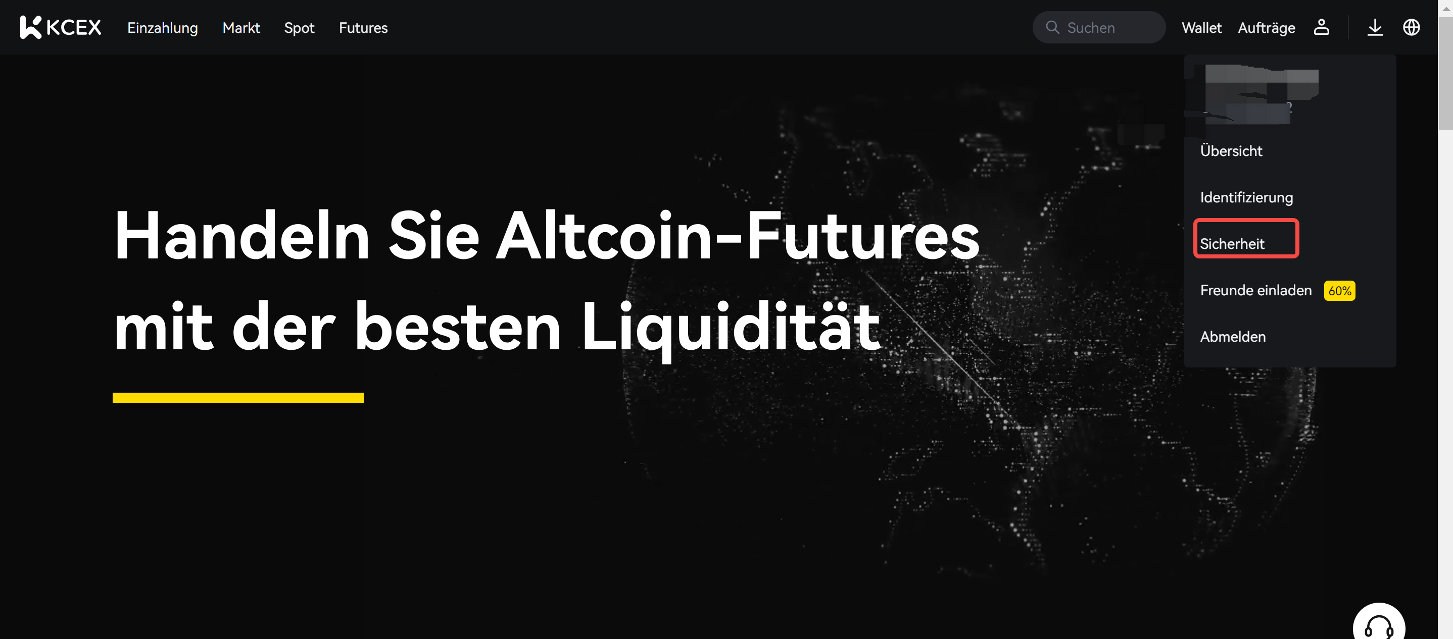 1. Melden Sie sich auf der offiziellen KCEX-Website an, bewegen Sie den Mauszeiger über das Benutzersymbol und klicken Sie auf [Sicherheit].