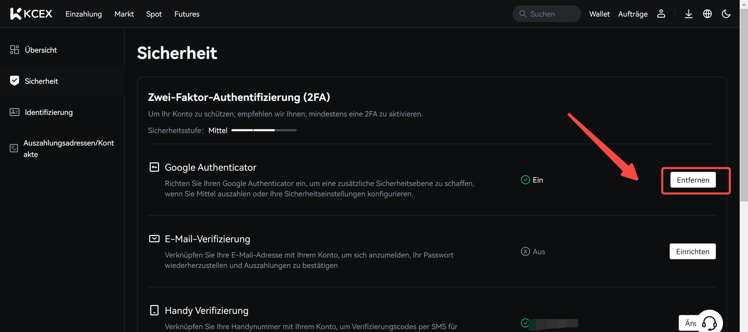2. Klicken Sie im Abschnitt „Google Authenticator“ auf „Entfernen“.
