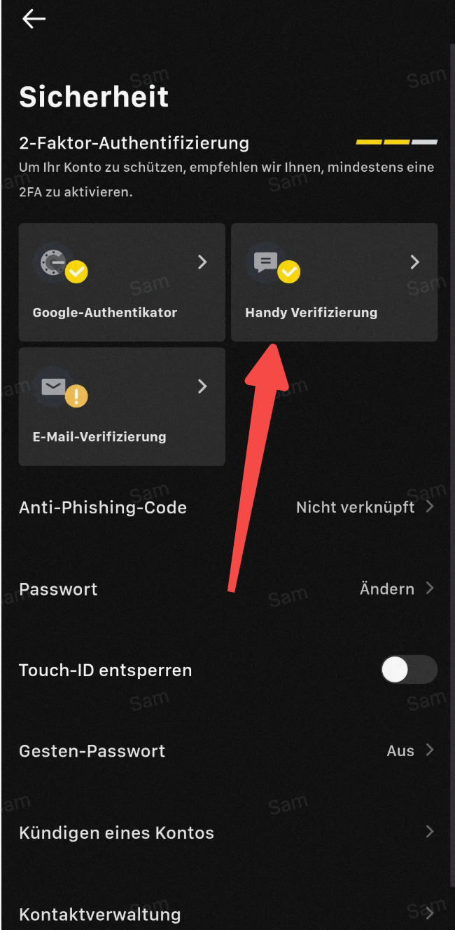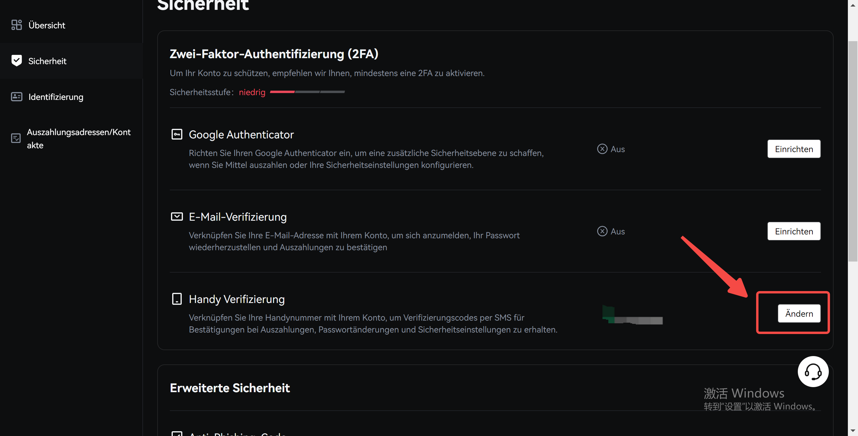 2. Klicken Sie im Abschnitt „Mobile Verifizierung“ auf „Ändern“.