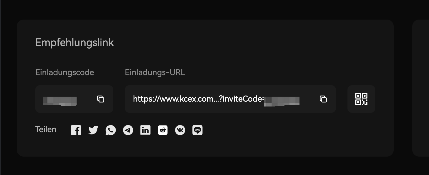 Bei KCEX erhält jeder Benutzer einen einzigartigen Einladungscode. Sie können den Standard-Einladungslink oder Ihren exklusiven Einladungscode verwenden, um Freunde zu unserer Plattform einzuladen. Zusätzlich können Sie für eine einfache Weitergabe einen einzigartigen QR-Code generieren, den Ihre Freunde einfach scannen können, um sich anzumelden und gemeinsam Spaß am Handel zu haben.