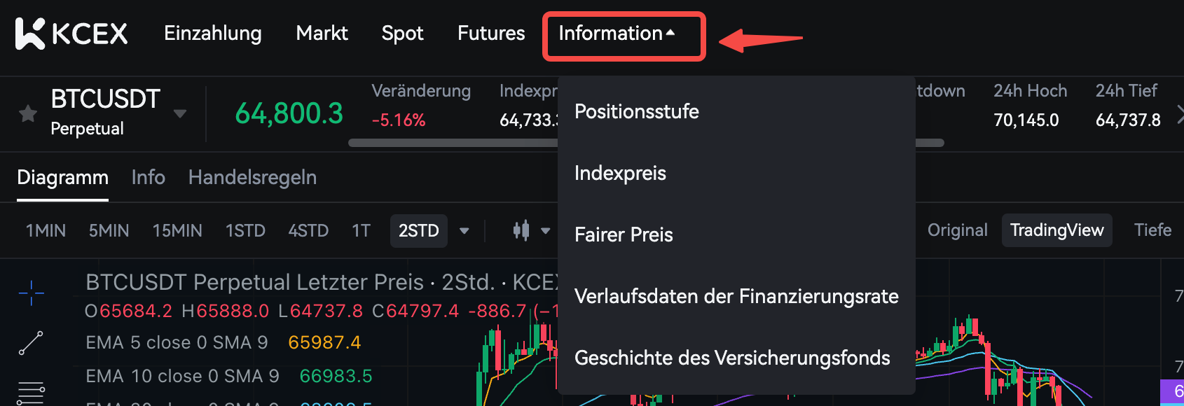 Weitere Spezifikationen für das entsprechende Handelspaar können Sie über das Informationssymbol auf der rechten Seite in der Futures-Handelsoberfläche einsehen.