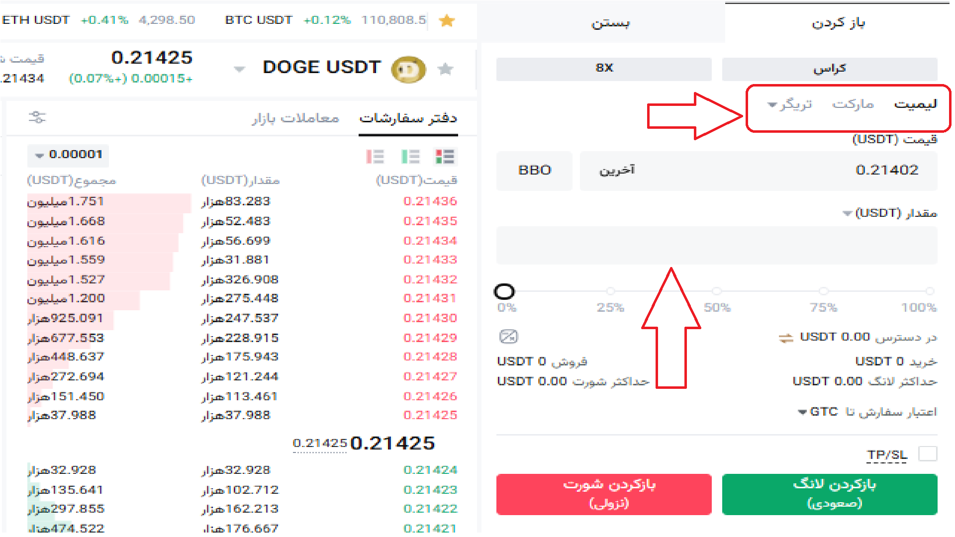 سفارش لیمیت: به کاربران اجازه میدهد قیمت سفارش را تعیین کنند و سفارش در قیمت تعیین شده یا قیمتی مطلوبتر انجام میشود.