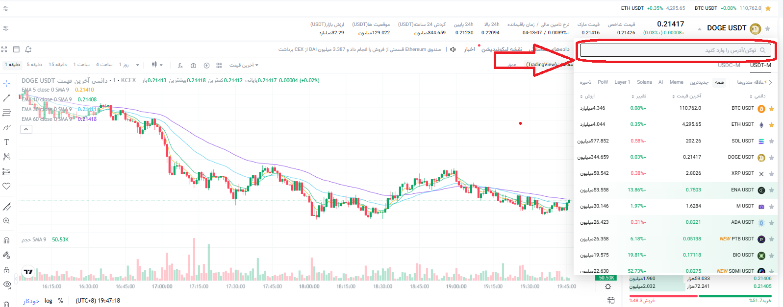 3.جفت معاملاتی فیوچرز مورد نظر خود را در لیست سمت چپ جستجو کنید.