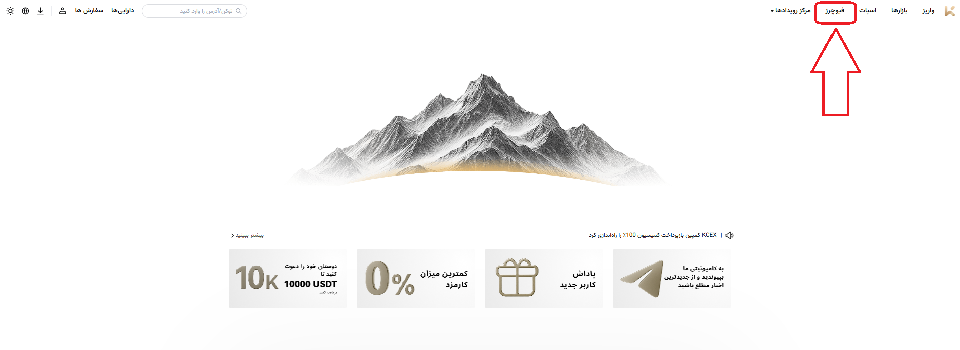 1.به حساب کاربری خود وارد شوید و در صفحه اصلی بر روی گزینه [فیوچرز] کلیک کنید.