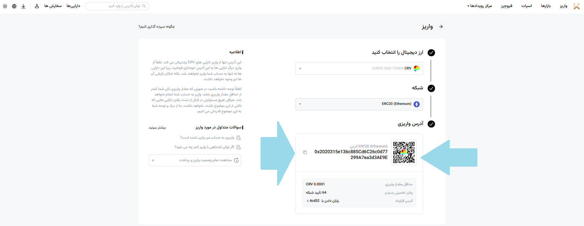 ۳. اگر تاکنون آدرس واریز دریافت نکردهاید، بر روی [ایجاد آدرس] کلیک کنید تا آدرس واریز ارز دیجیتال مربوطه تحت شبکه انتخاب شده را دریافت کنید.