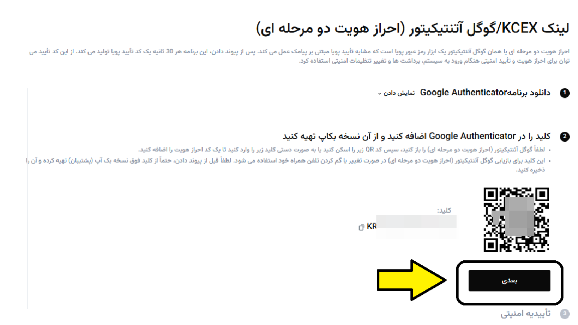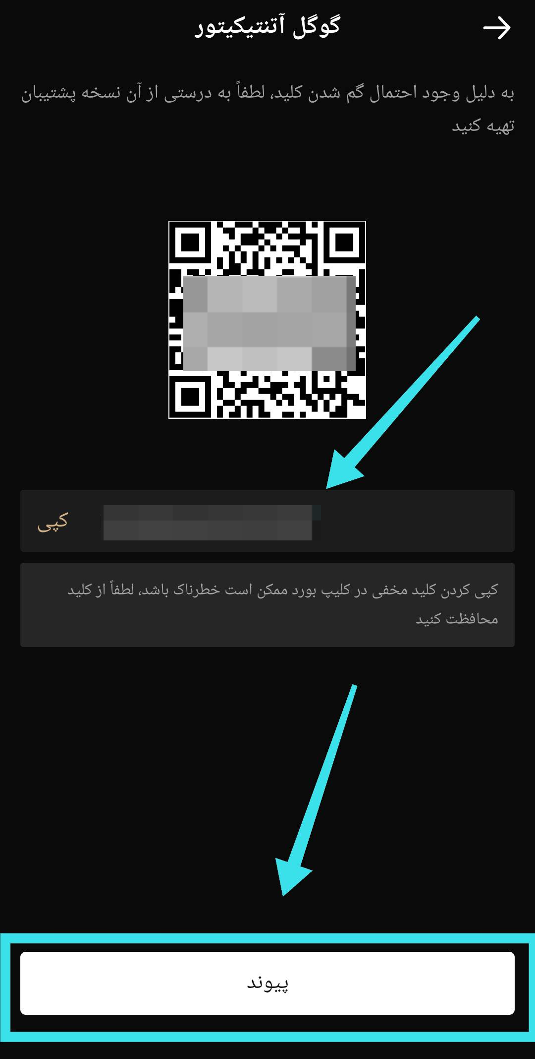 کلید را برای بازیابی Google Authenticator در صورت تغییر یا گم کردن تلفن همراه خود نگه دارید. لطفاً قبل از اتصال، حتماً از کلید فوق نسخه پشتیبان تهیه و ذخیره کنید.