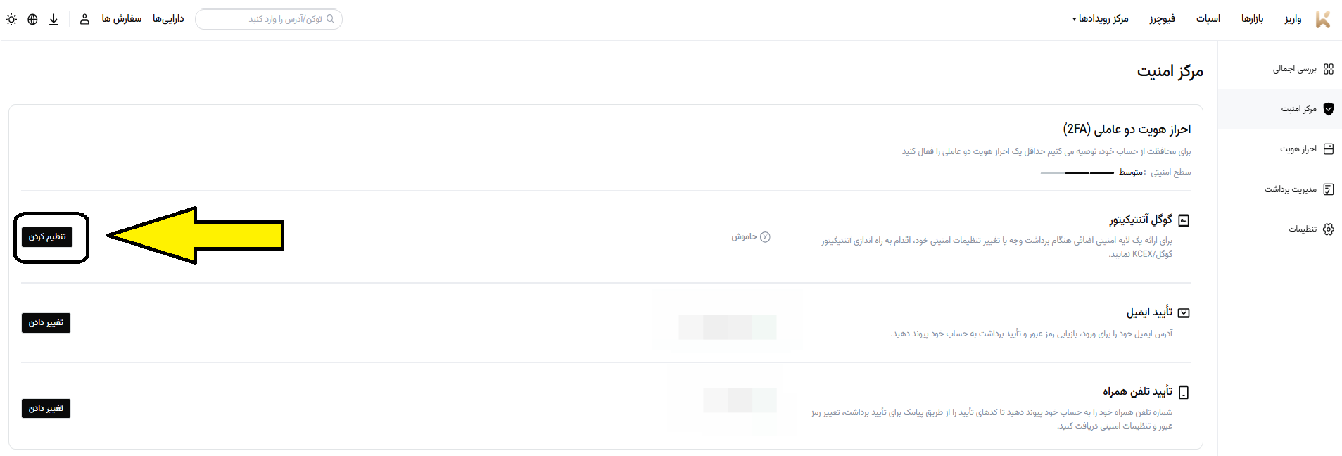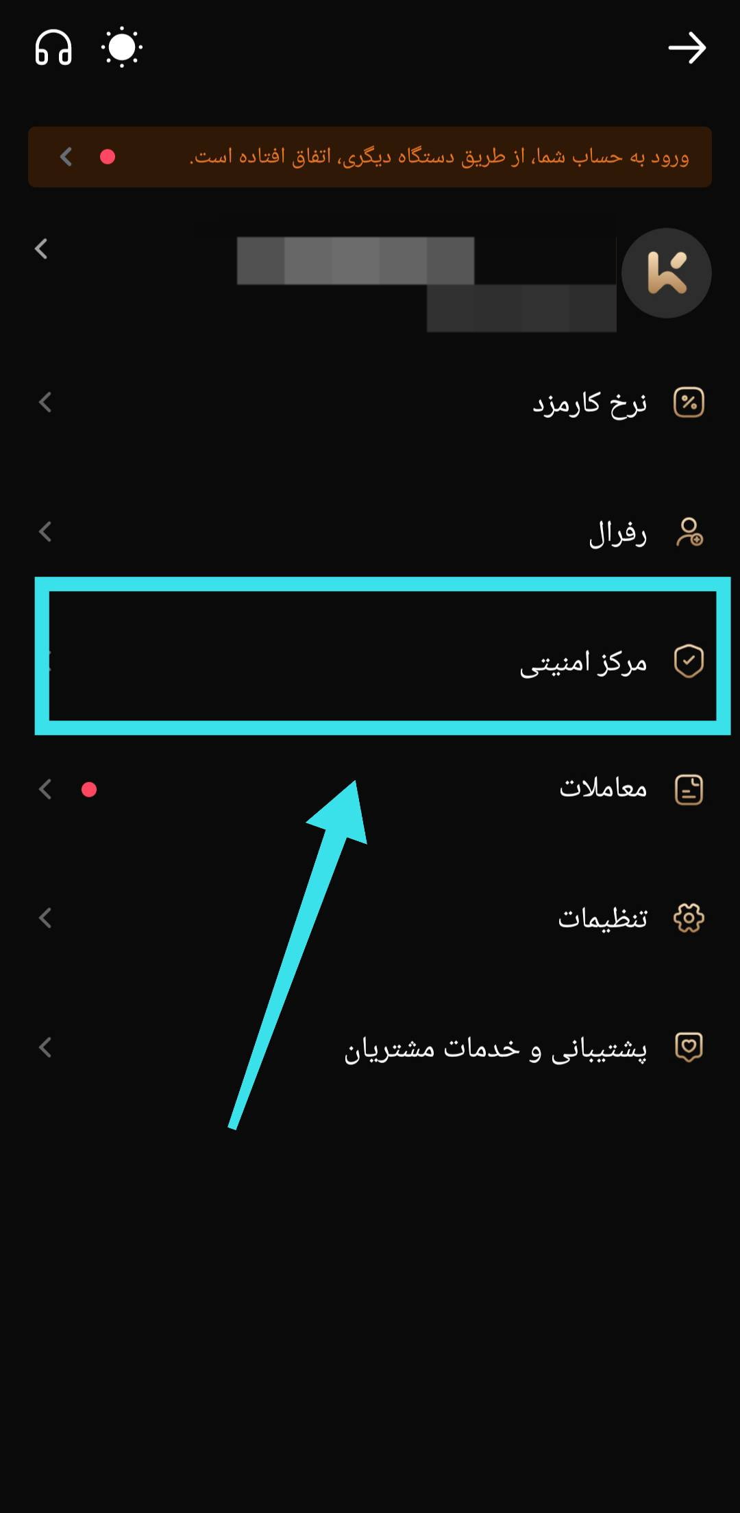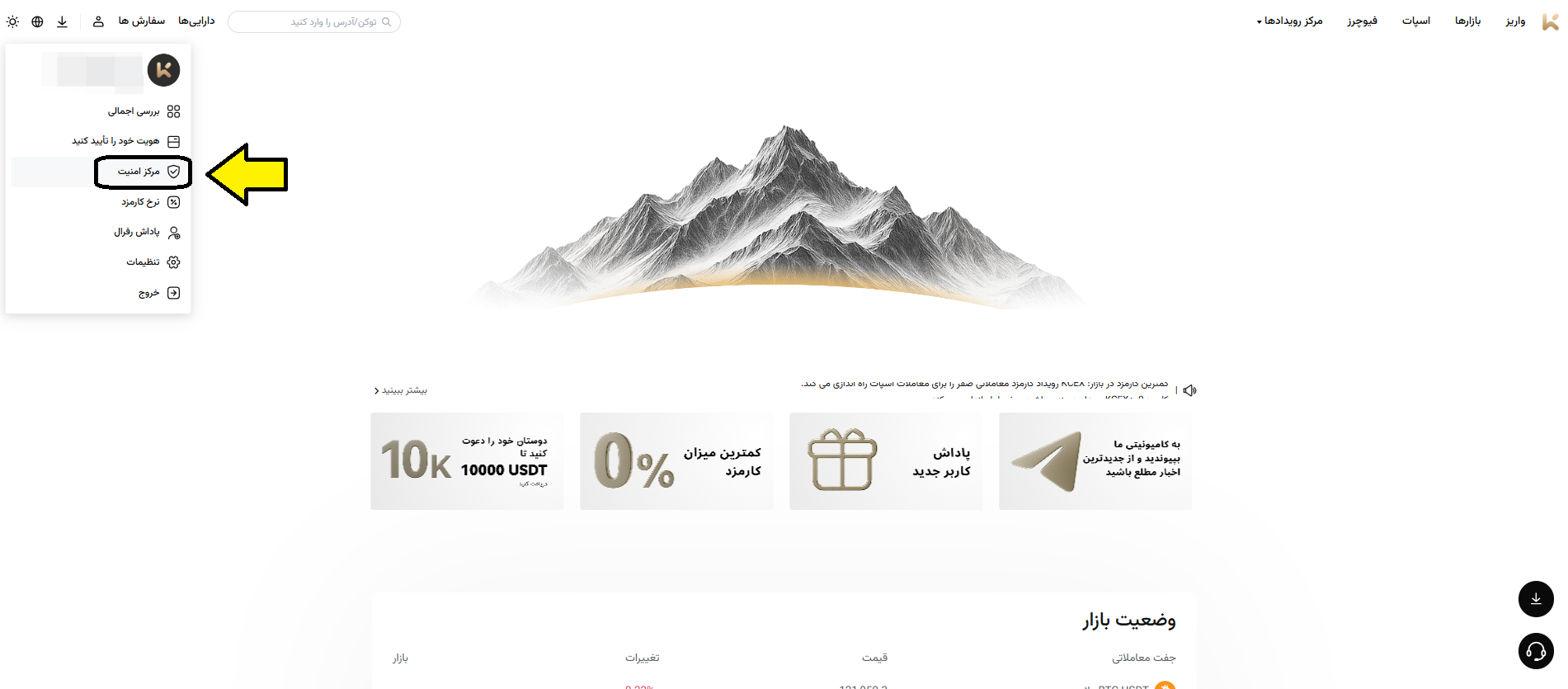 1. وارد وب سایت رسمی KCEX شوید، نشانگر را روی نماد کاربر نگه دارید و روی [Security] یا [امنیت] کلیک کنید.