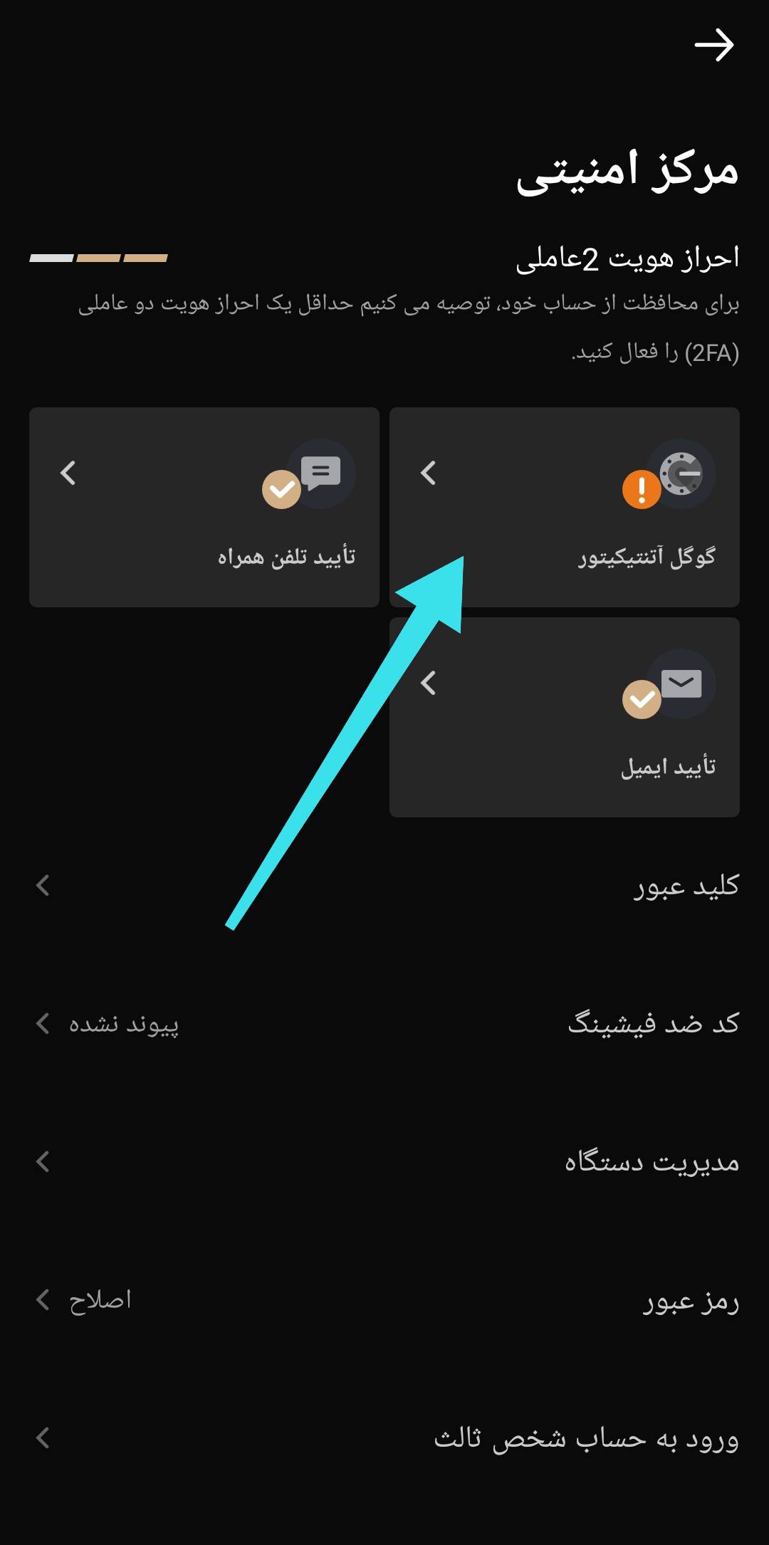 3. در مرکز امنیتی، روی [گوگل آتنتیکیتور] کلیک کنید تا فرآیند الزام آور آغاز شود.