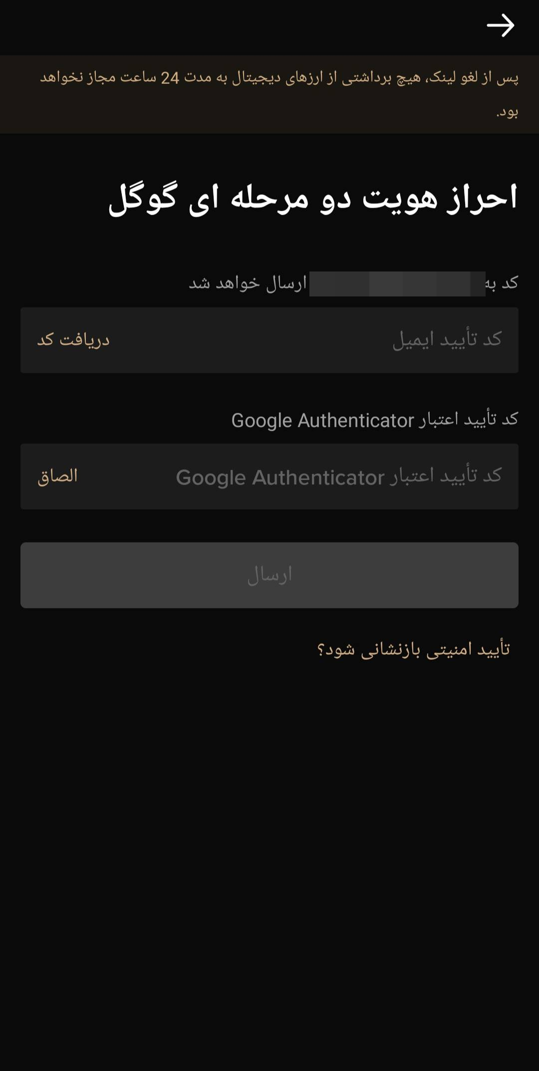 5. پس از وارد کردن رمز ورود به حساب کاربری، کد تأیید ایمیل و کد Google Authenticator، روی [فعال کردن(ارسال)] کلیک کنید تا فرآیند تکمیل شود.