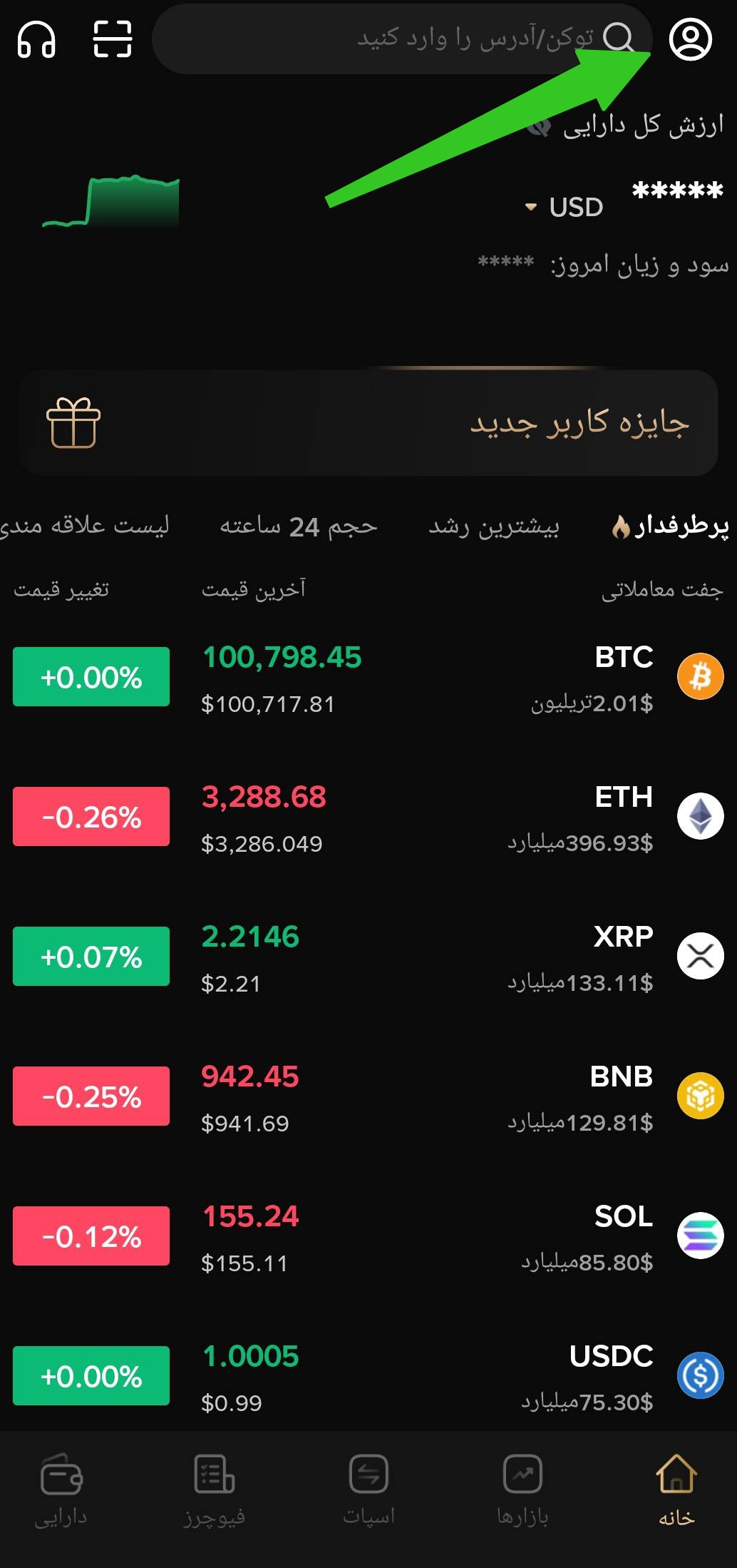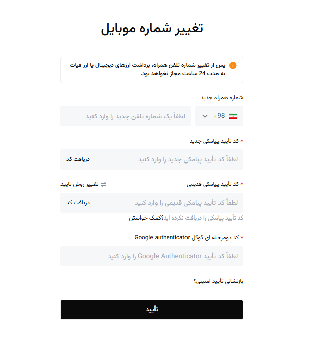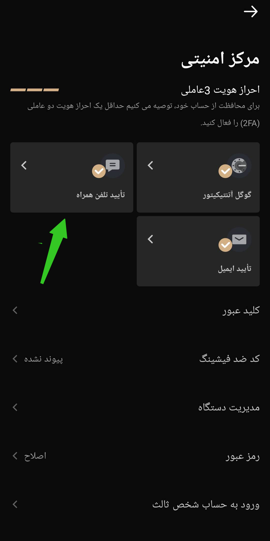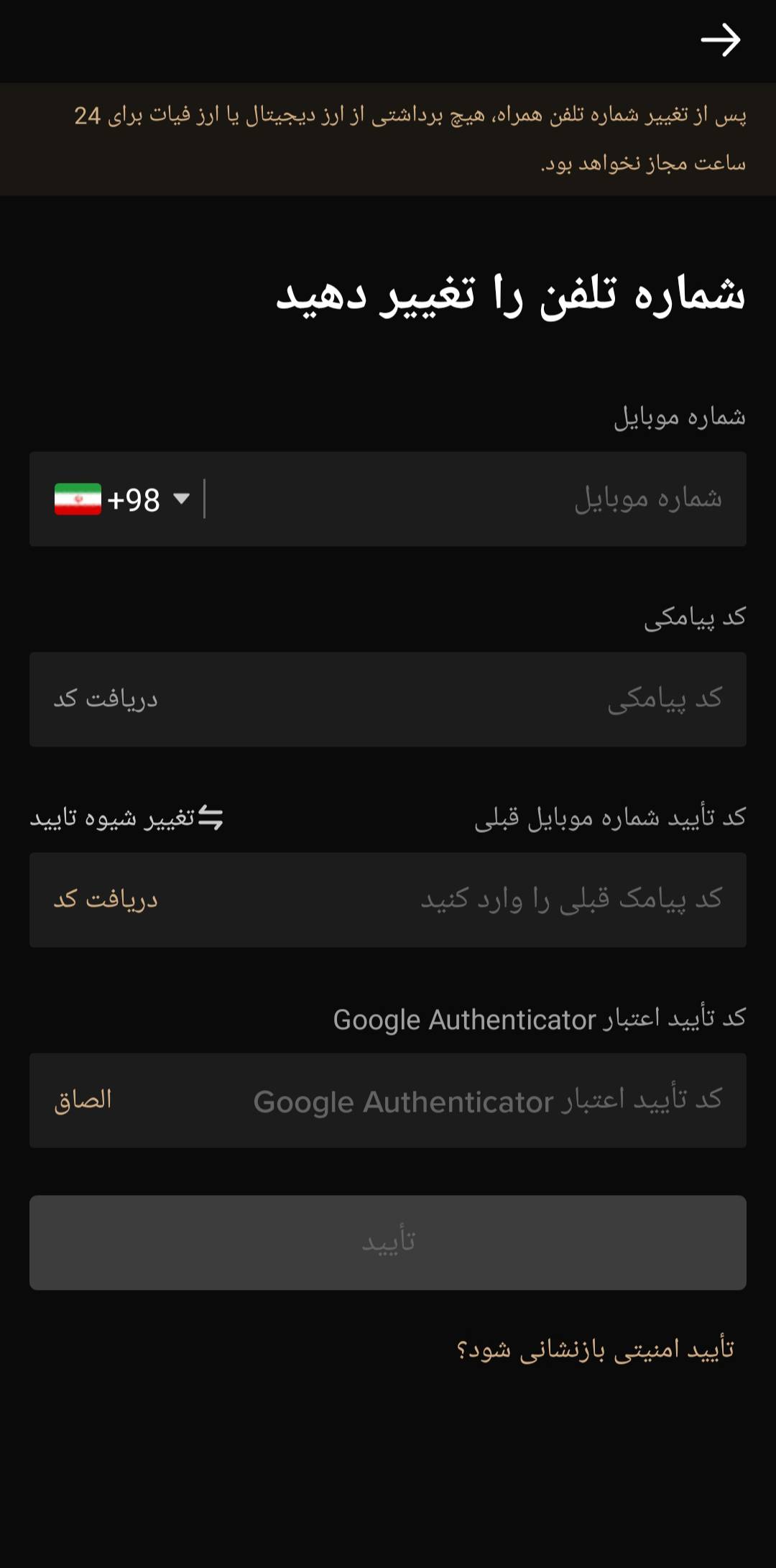 نحوه پیوند شماره موبایل به حساب KCEX در برنامه موبایل: