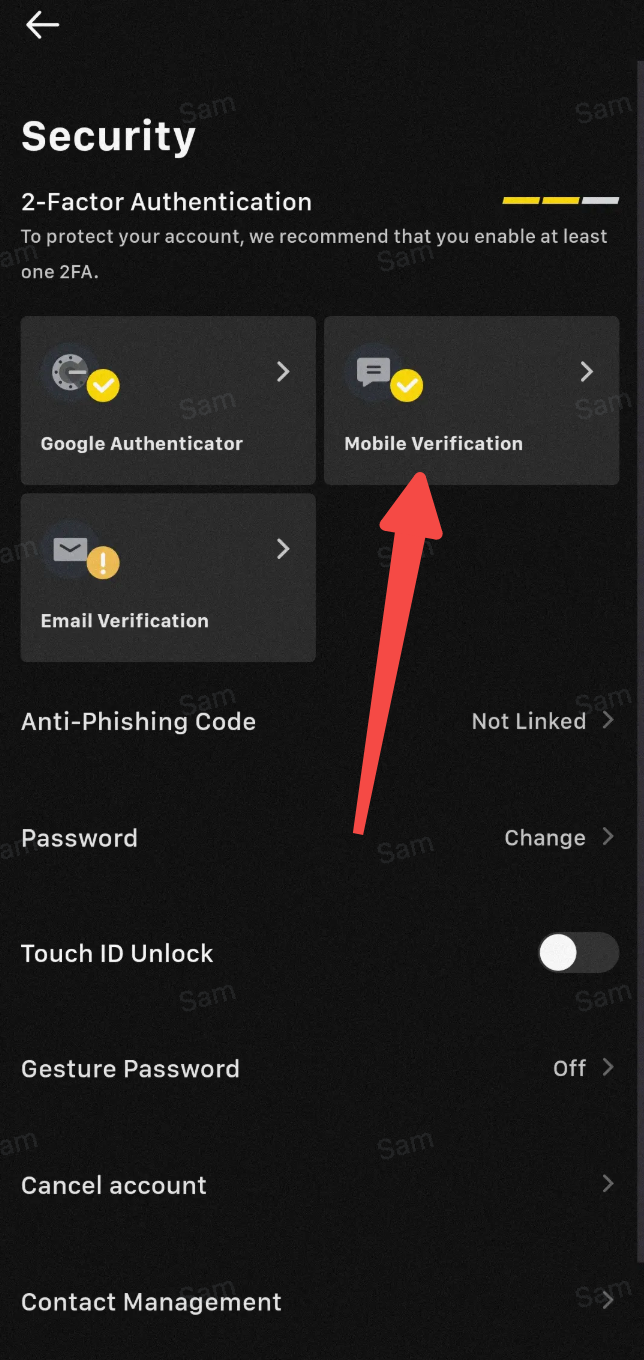 3. در مرکز امنیتی، روی [تایید موبایل] کلیک کنید.