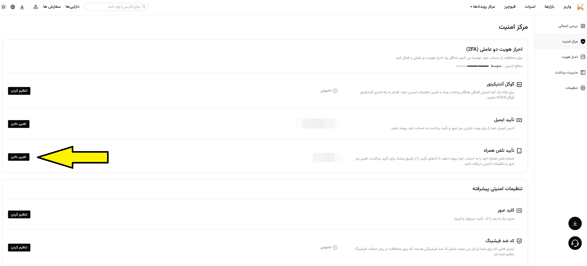 2. روی «تغییر دادن» در بخش تأیید تلفن همراه کلیک کنید.