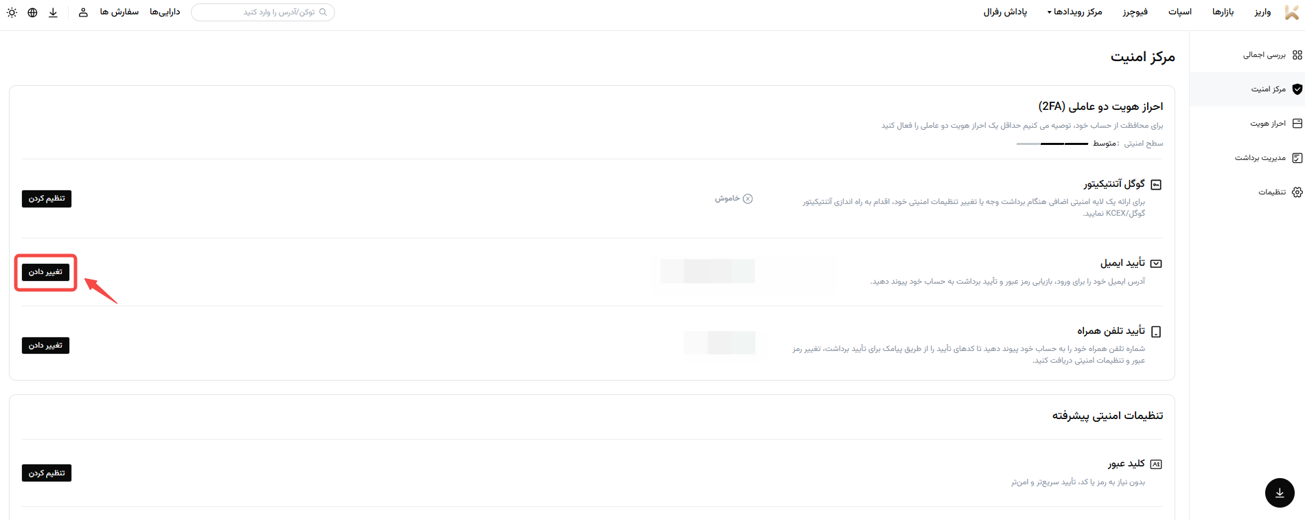 3. در مرکز امنیت، روی [Email Verification] یا [تایید ایمیل] کلیک کنید.