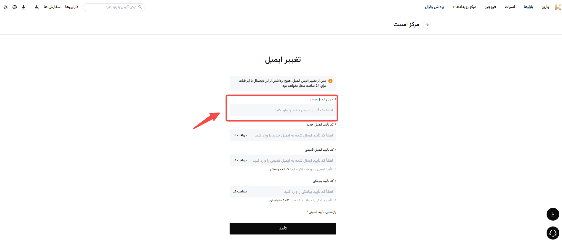 نحوه لینک آدرس ایمیل به حساب KCEX در وب سایت: