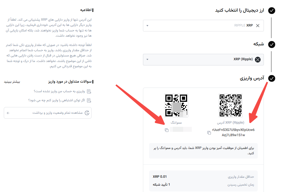 دقت: ممو/تگ با آدرس واریز و برداشت یک به یک مرتبط است.