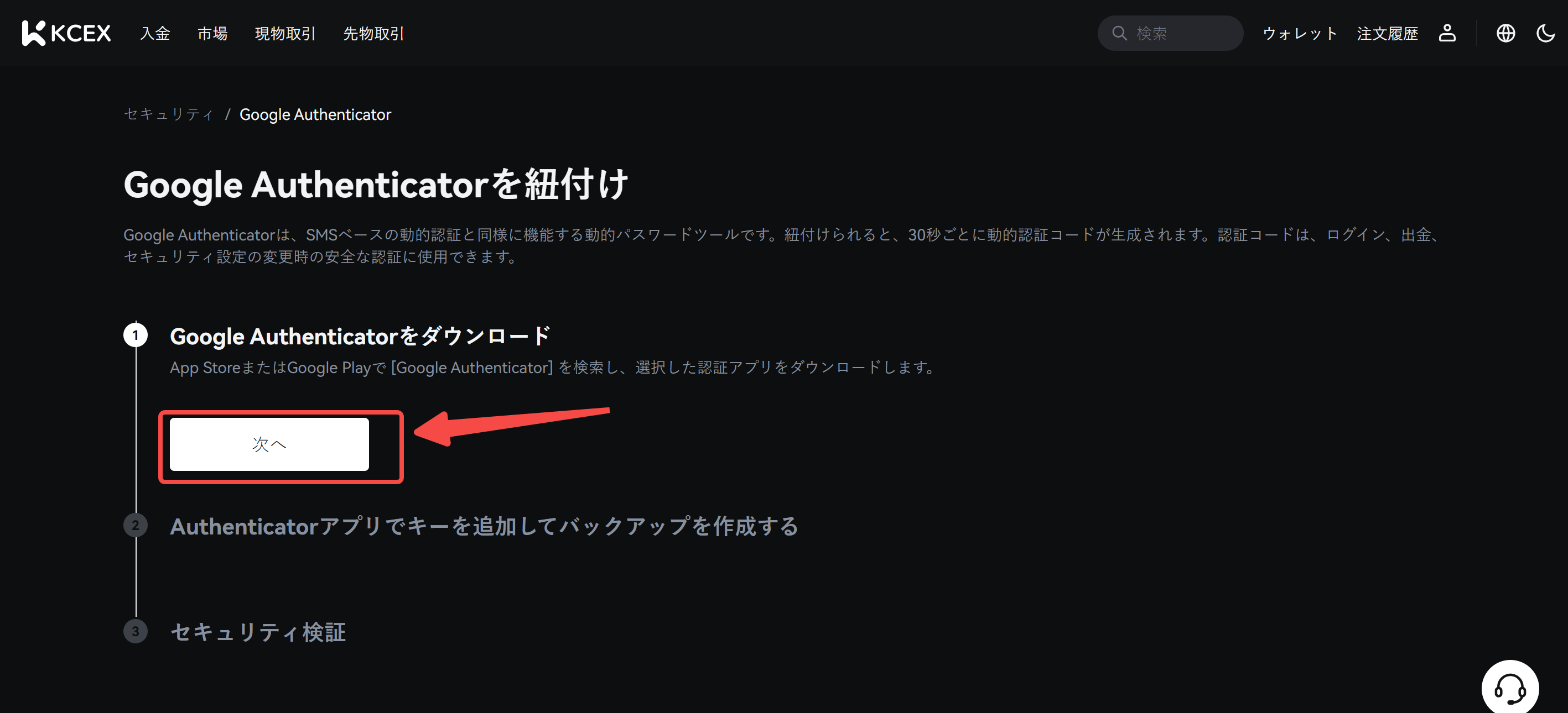 3. 認証アプリをダウンロードします。完了したら、「次のステップ」をクリックして次に進みます。