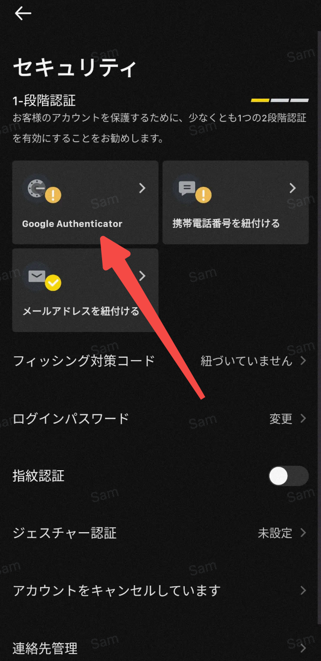 3. セキュリティセンターで、バインディングプロセスを開始するために[Google認証]をクリックします。