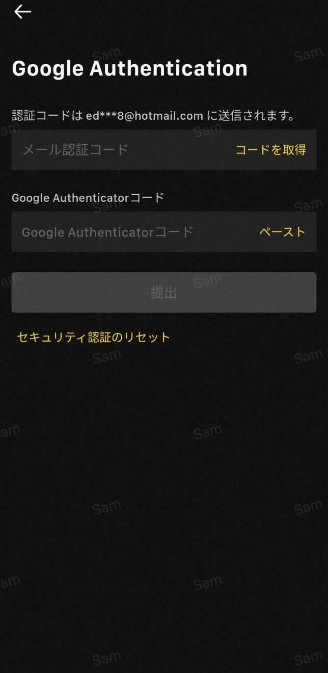 6. メール認証コード/ SMS認証コードおよびGoogle認証コードを入力し、[送信]をクリックしてバインディングプロセスを完了します。