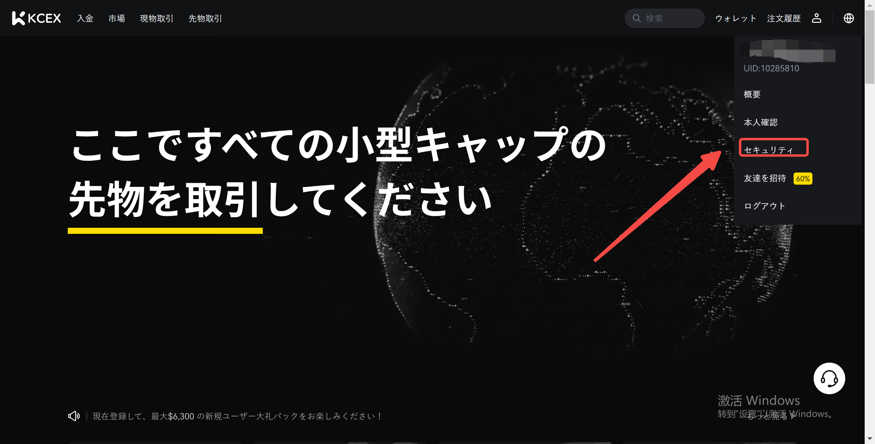 1. KCEX の公式 Web サイトにログインし、ユーザー アイコンの上にマウスを置き、[セキュリティ] をクリックします。