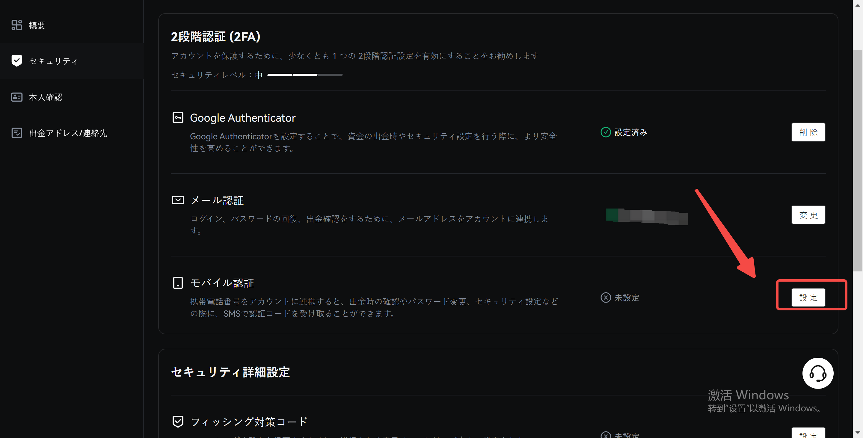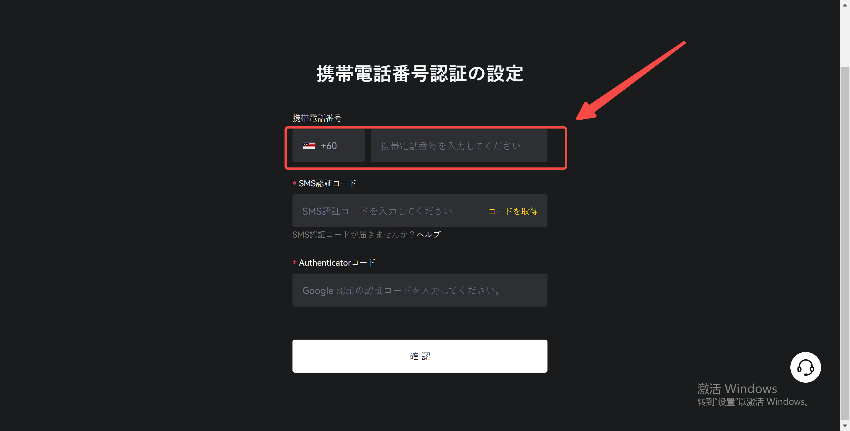 3. 国コードを選択し、携帯電話番号、SMS 認証コード、電子メール認証コード/Google 認証コードを入力し、[確認] をクリックしてリンクを完了します。