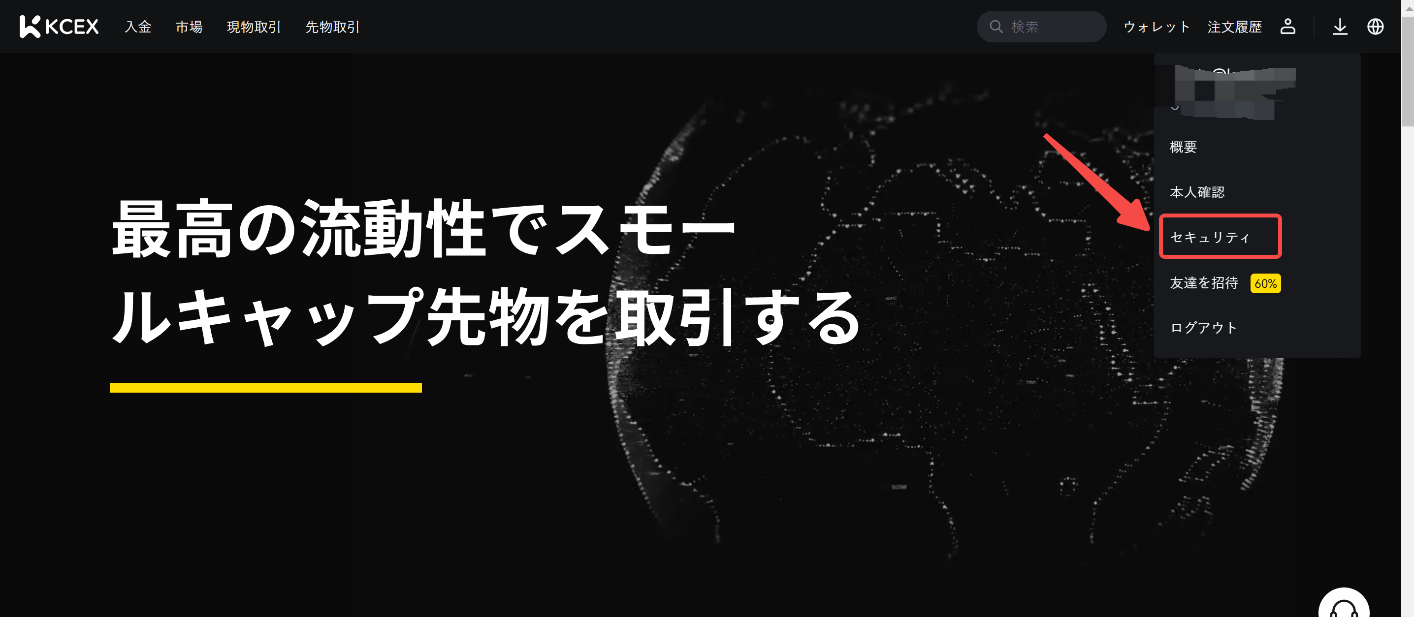 1. KCEX の公式 Web サイトにログインし、ユーザー アイコンの上にマウスを置き、[セキュリティ] をクリックします。