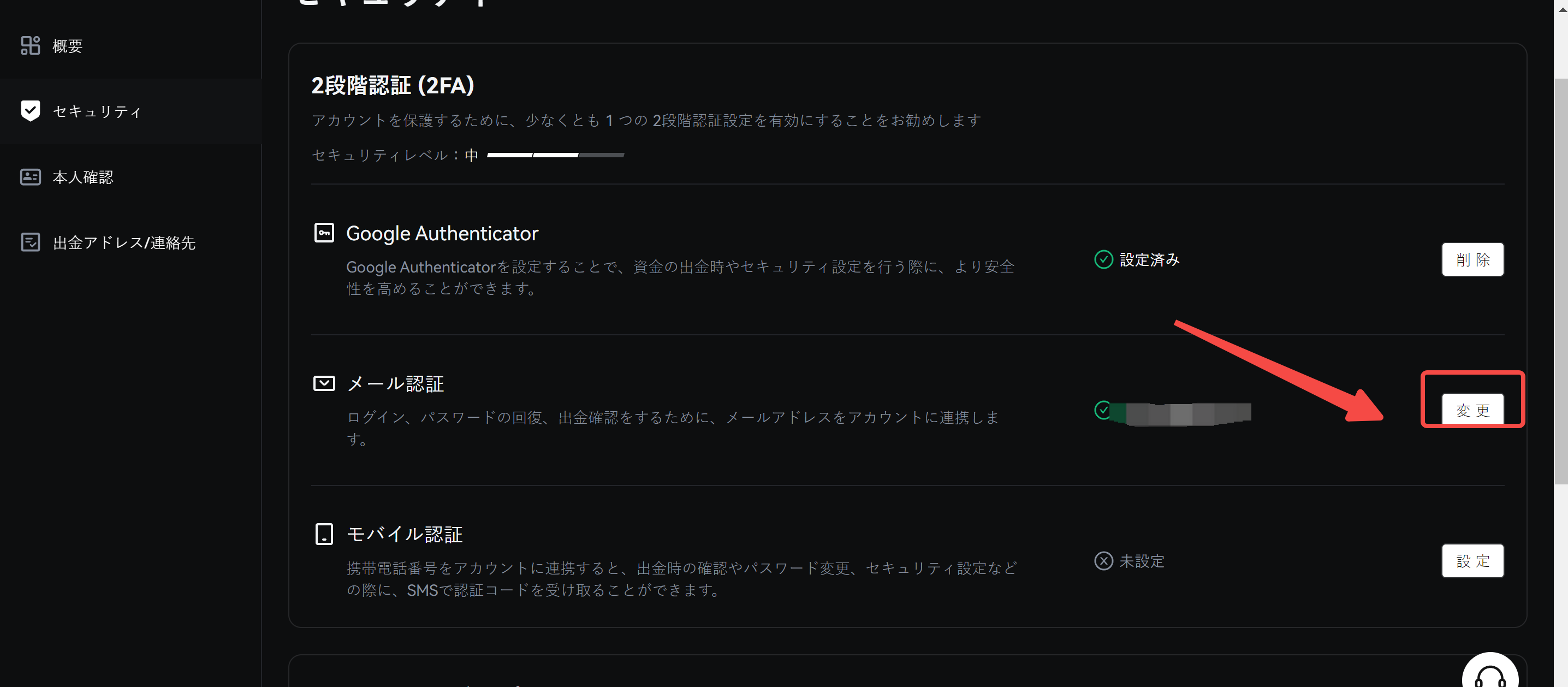 2. [電子メール検証] セクション内の [変更] をクリックします。