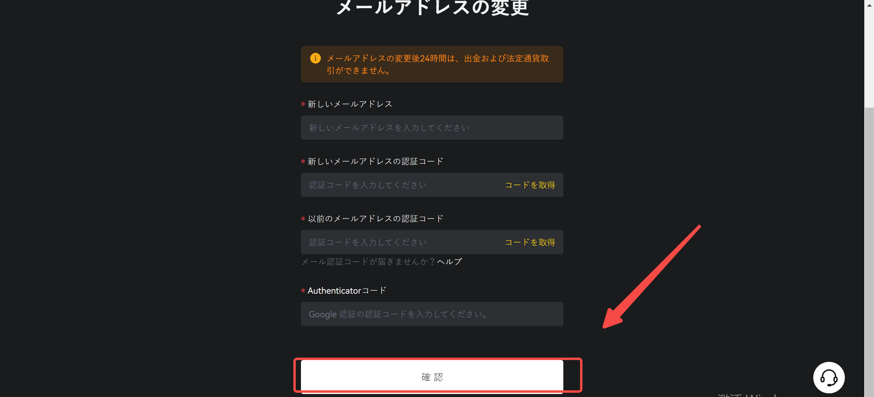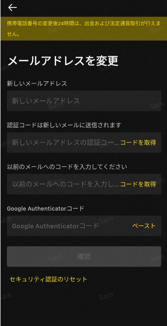 4. 新しいメールアドレス、新しいメール認証コード、古いメール認証コード、そしてGoogle認証コード/ SMS認証コードを入力し、変更プロセスを完了するためにクリックしてください。