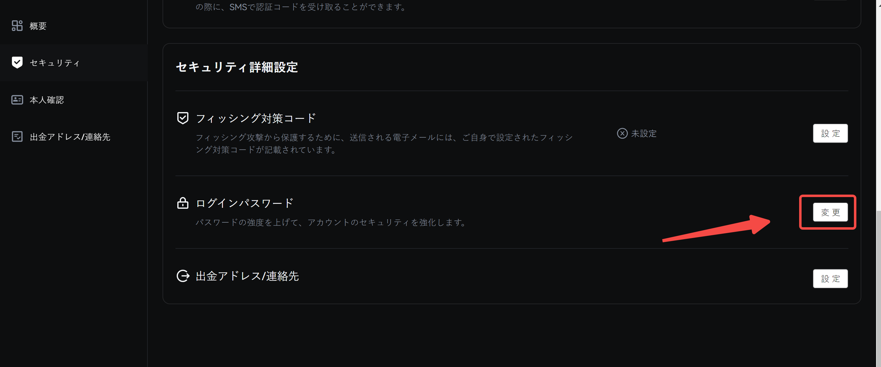 b. 「ログインパスワード」セクション内の「変更」をクリックします。