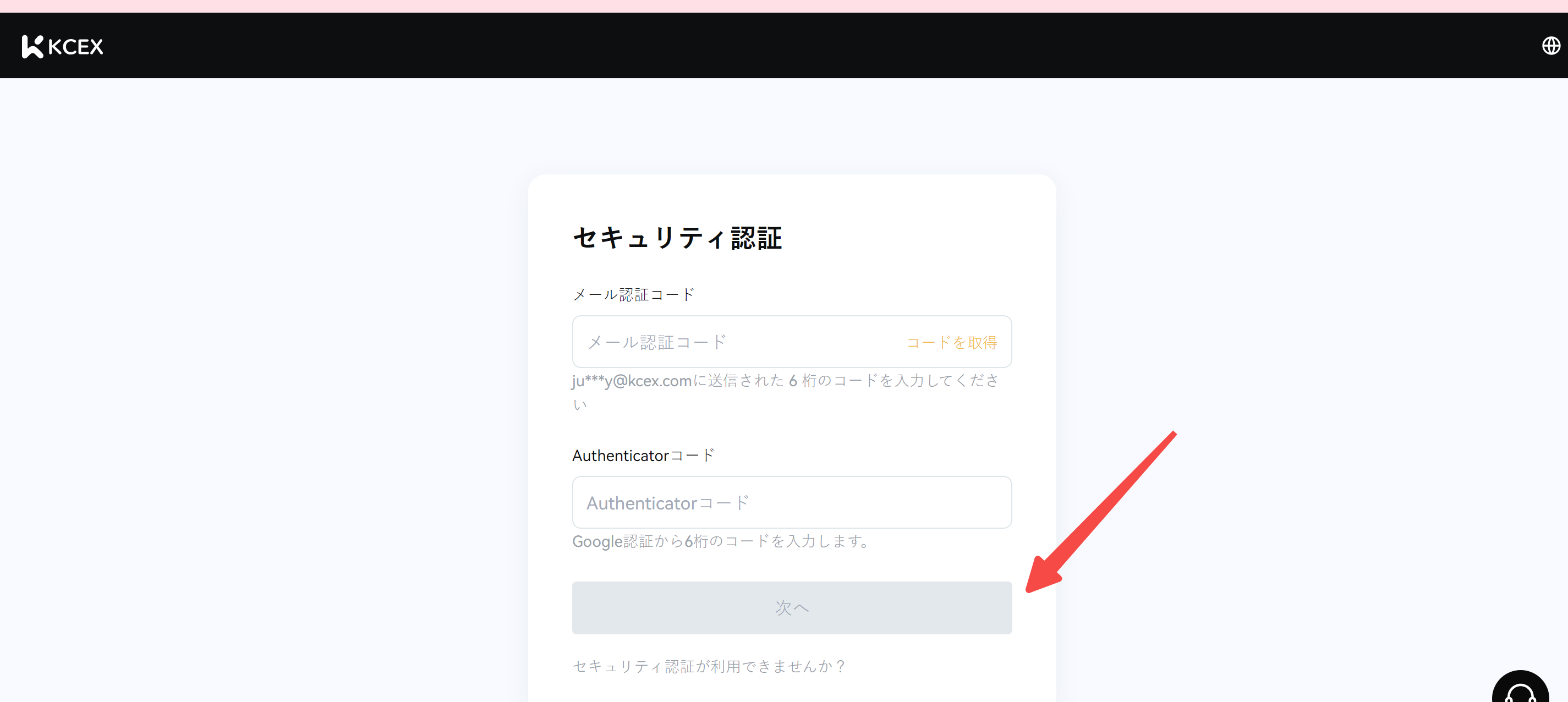 c.メール認証コード/SMS 認証コード/Google 認証コードを入力し、[次のステップ] をクリックします