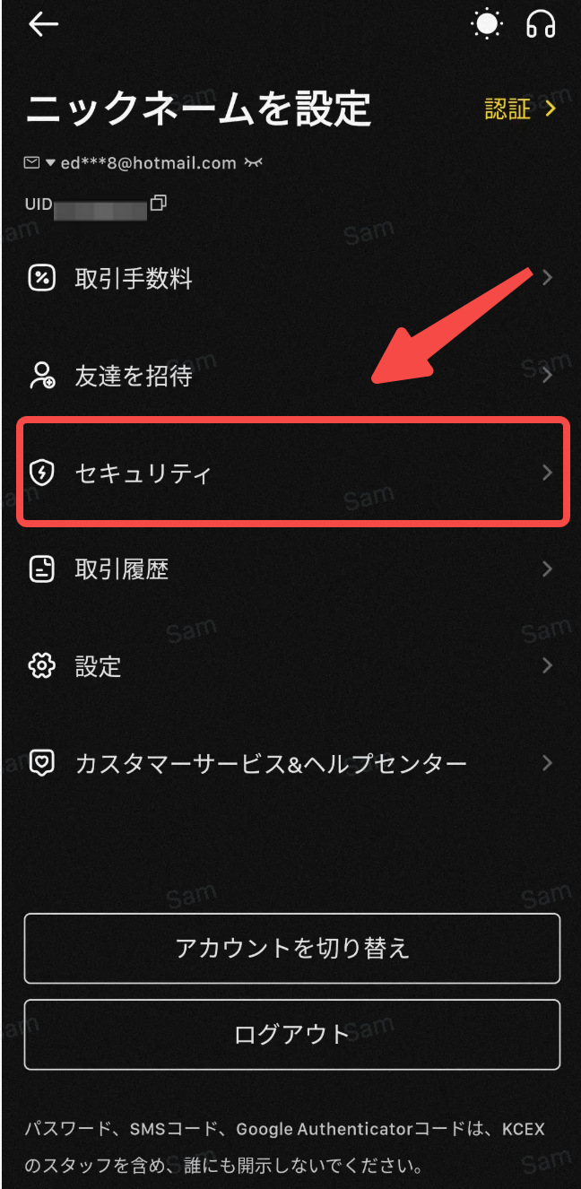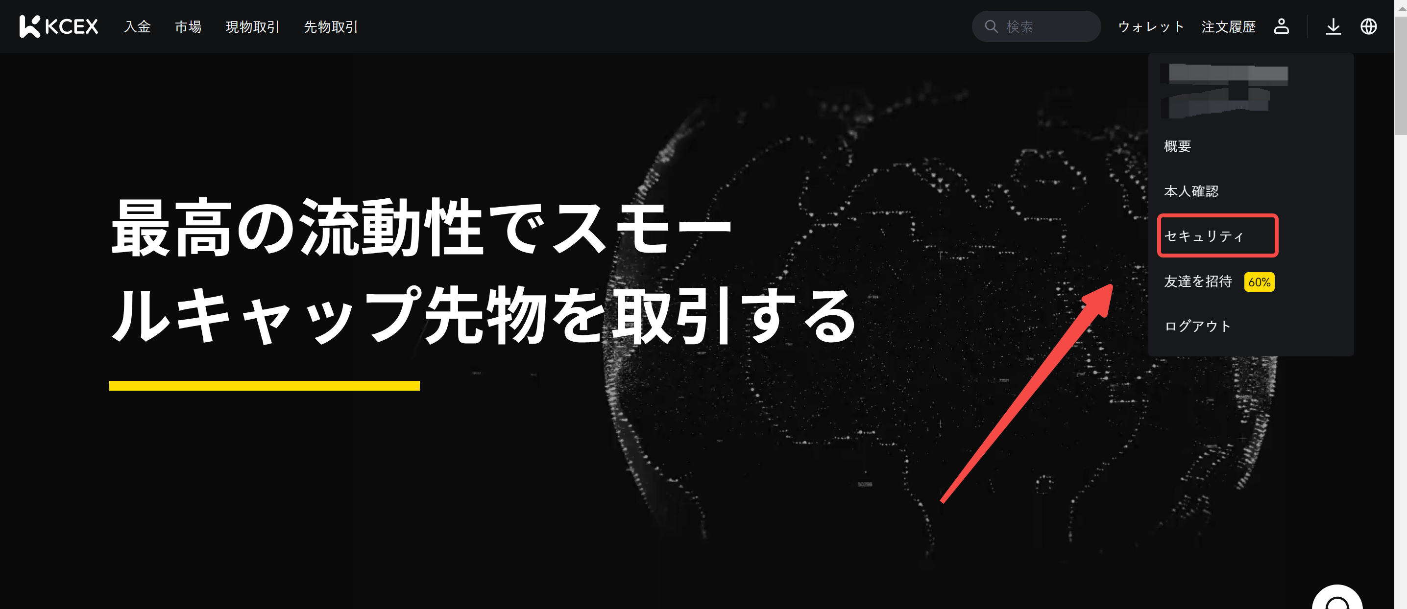 1. KCEX の公式 Web サイトにログインし、ユーザー アイコンの上にマウスを置き、[セキュリティ] をクリックします。