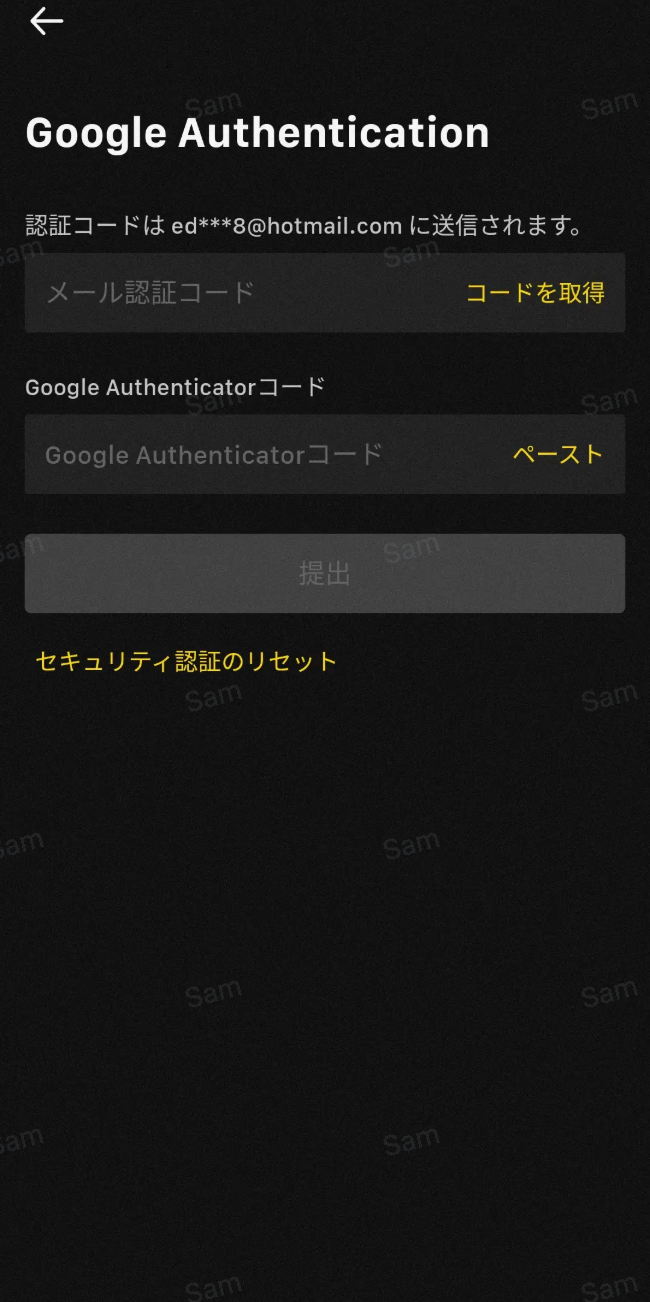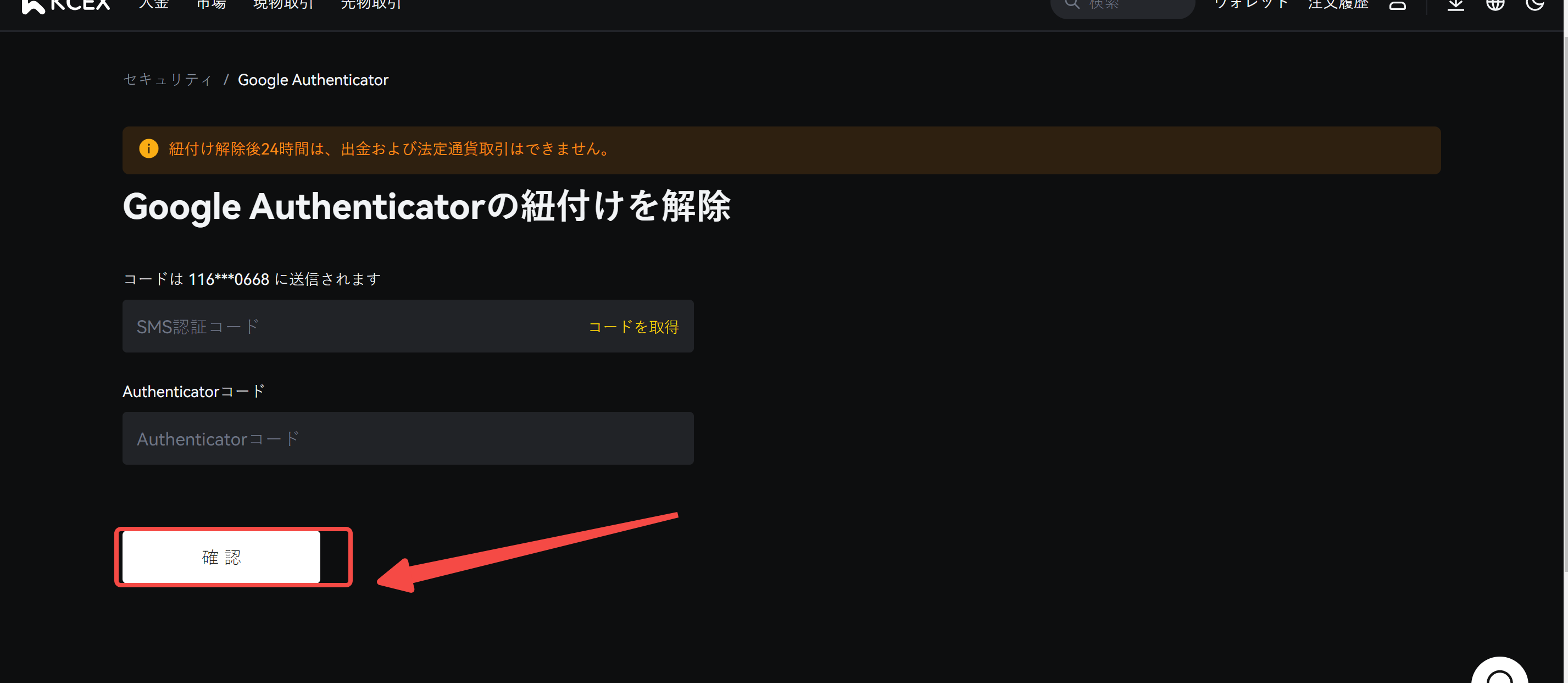 4.メール認証コード / SMS認証コード / Google認証コードを入力し、「送信」をクリックして解除プロセスを完了してください。