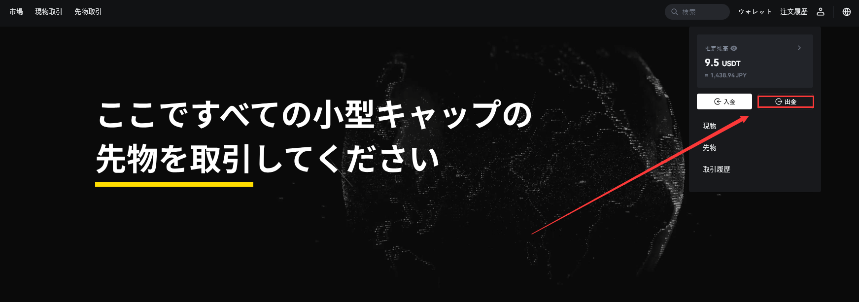 1. KCEX の公式 Web サイトにログインします: www.kcex.com , 右上の[ウォレット] - [出金]をクリックします。