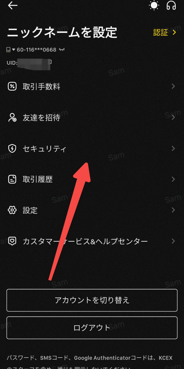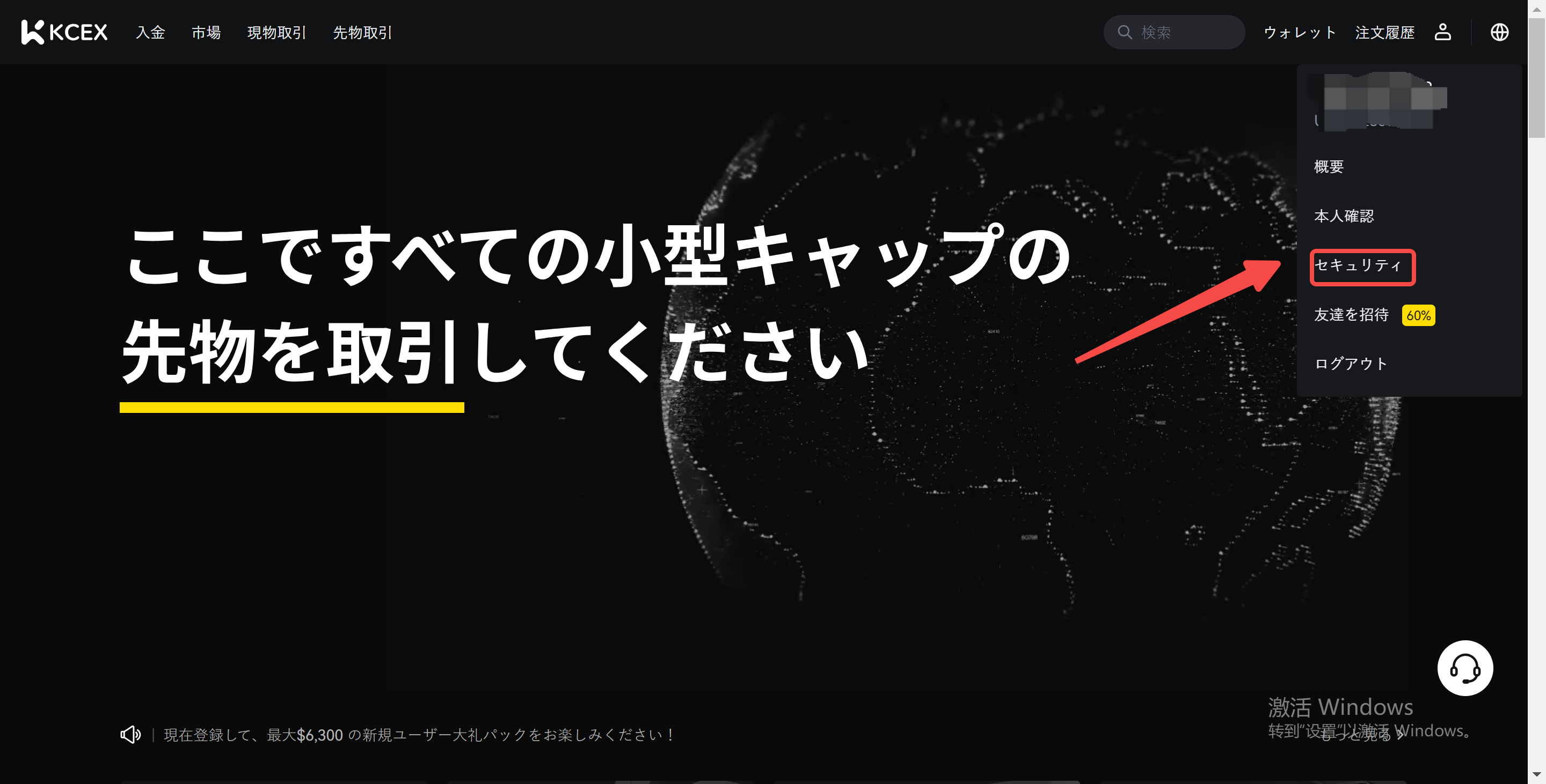 1. KCEX の公式 Web サイトにログインし、ユーザー アイコンの上にマウスを置き、[セキュリティ] をクリックします。