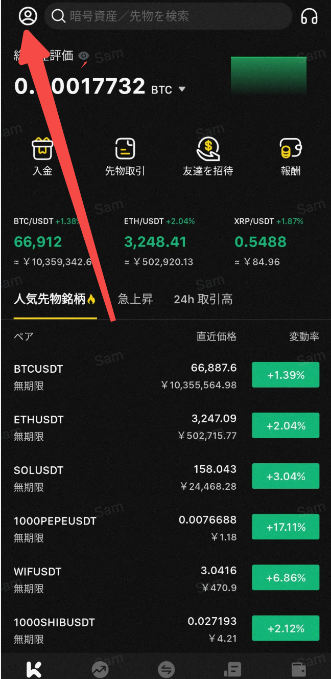 1. アプリにログインした後、ホームページの左上角に移動して[パーソナルセンター]をクリックします。