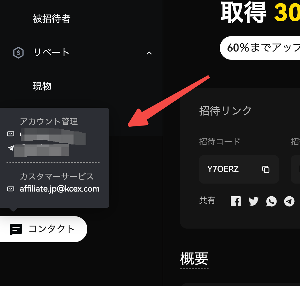 注意:使用中に何か疑問がある場合やサポートが必要な場合は、専属のアカウントマネージャーに連絡するか、右下のカスタマーサービスアイコンをクリックして、いつでもオンラインカスタマーサービスに連絡してください。また、affiliate@kcex.comにメールを送ることもできます。私たちは、皆様を全力でサポートすることを約束します。