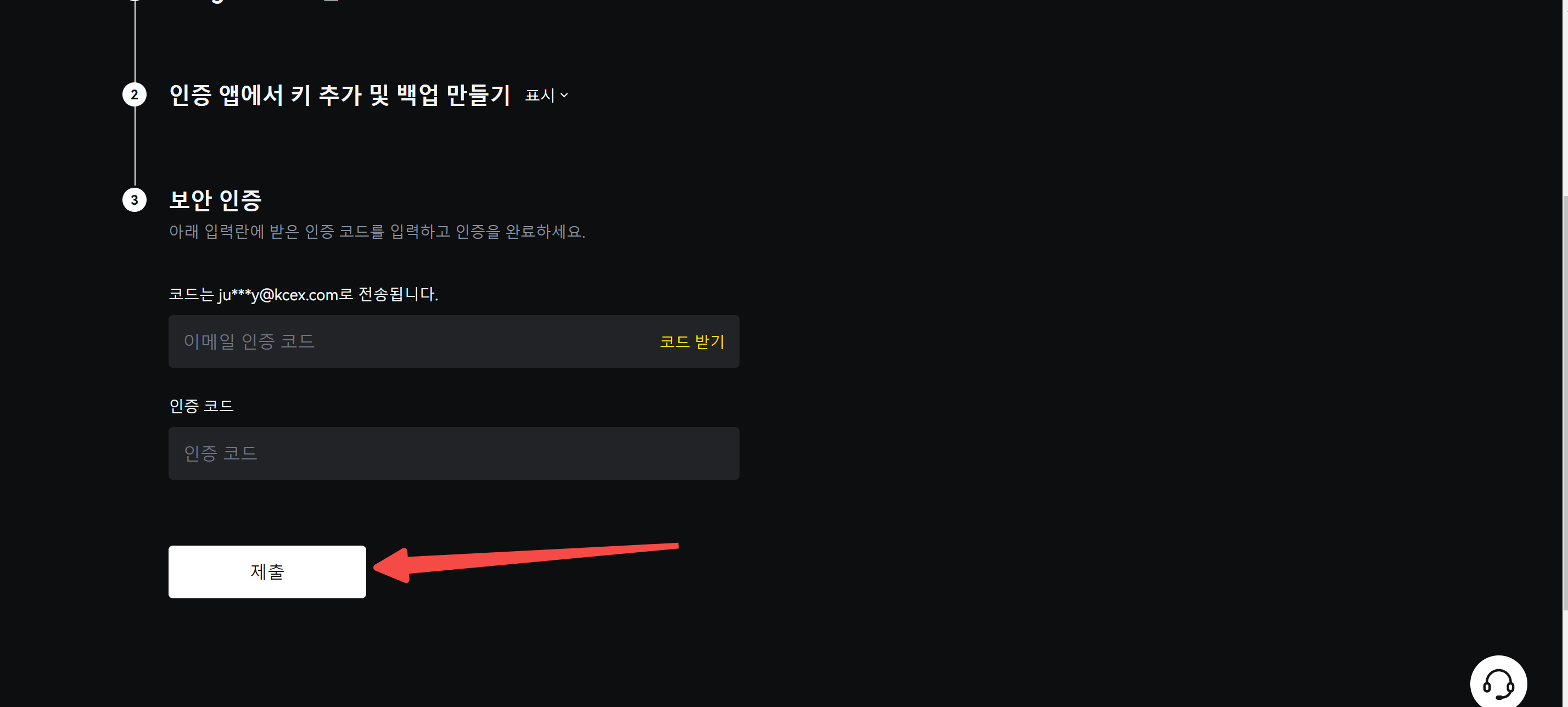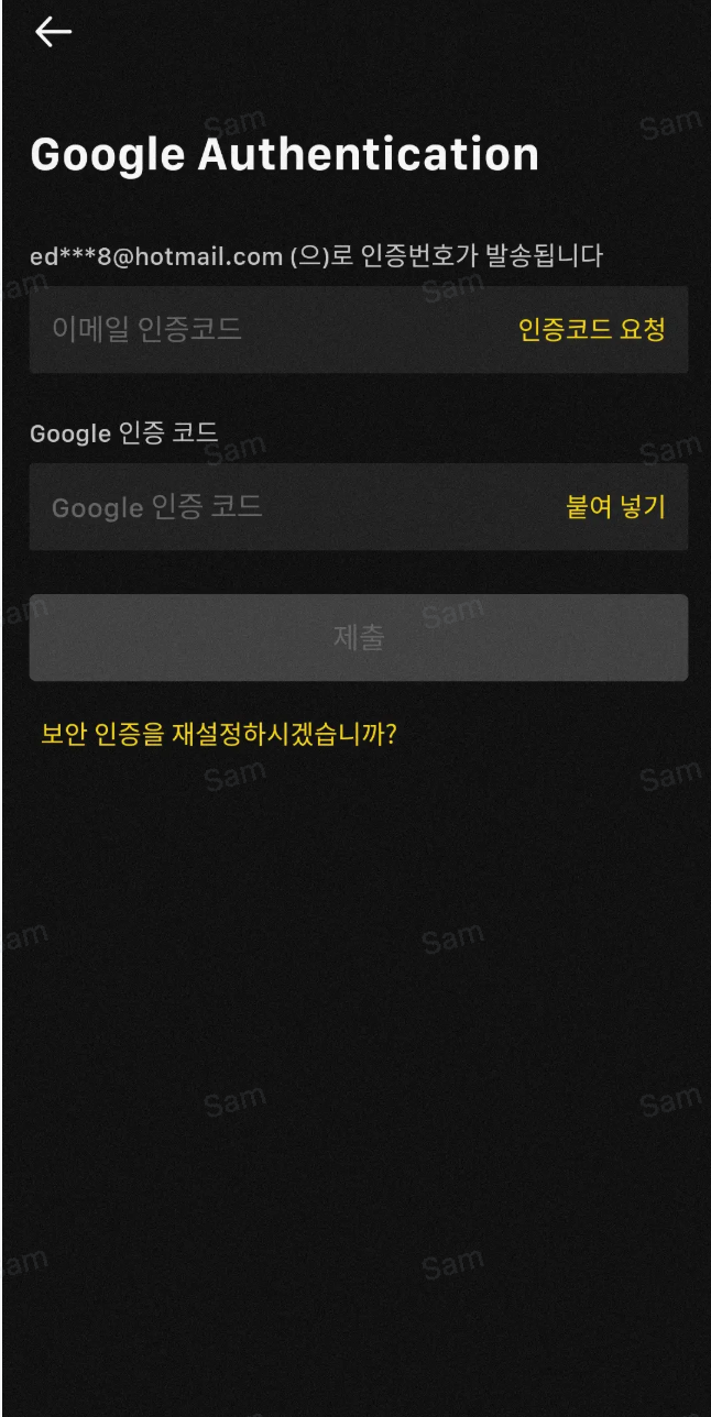 6. 이메일 인증 코드/문자 인증 코드 및 Google 인증 코드를 입력하고 [제출]을 클릭하여 연동 과정을 완료하세요.