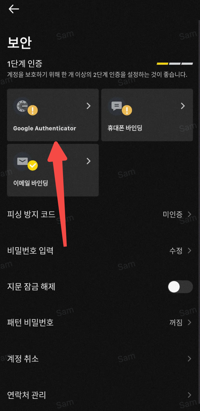 3. 보안 센터에서 [Google 인증]을 클릭하여 연동 절차를 시작하세요.
