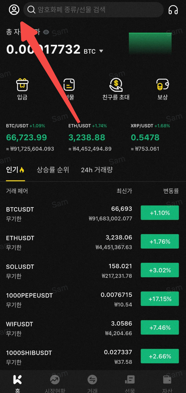 1. 앱에 성공적으로 로그인한 후, 홈페이지 왼쪽 상단으로 이동하여 [개인 센터]를 클릭합니다.