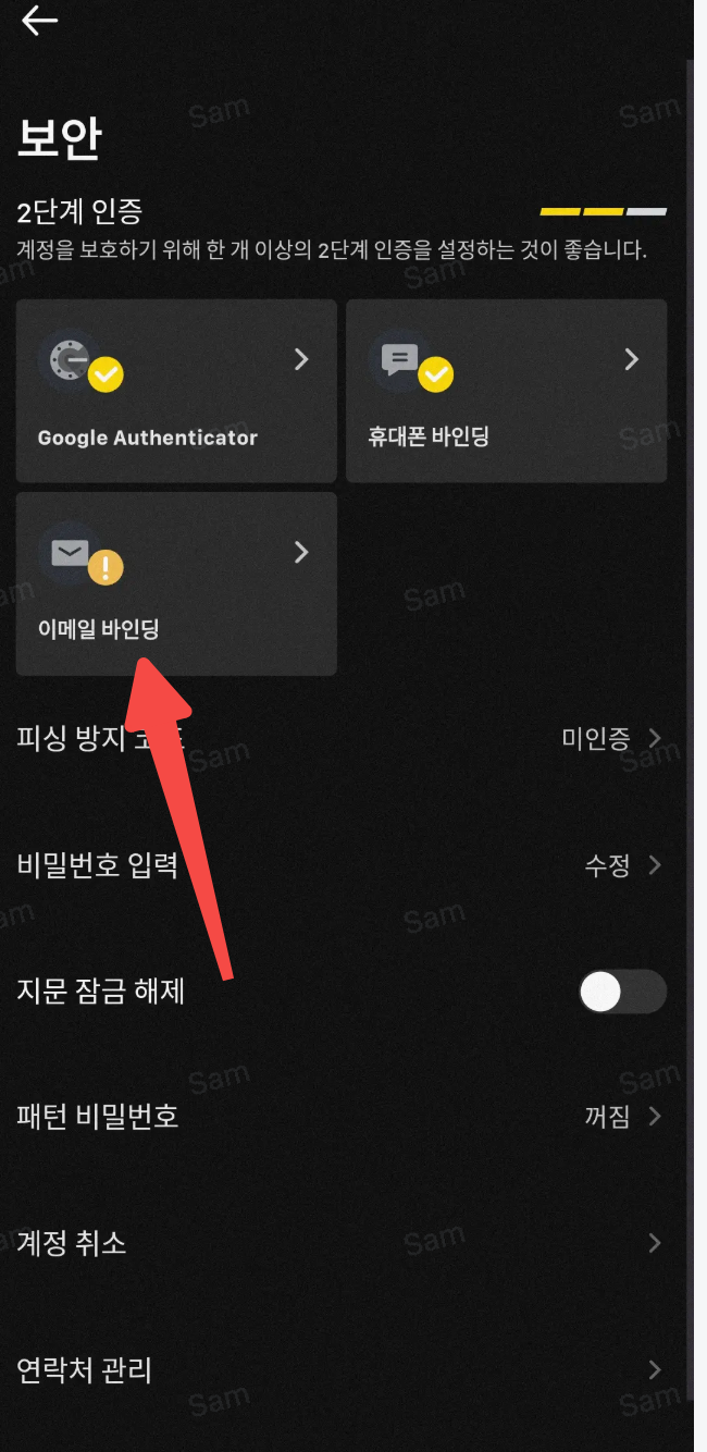 3. 보안 센터에서 [이메일 연동]을 클릭합니다.