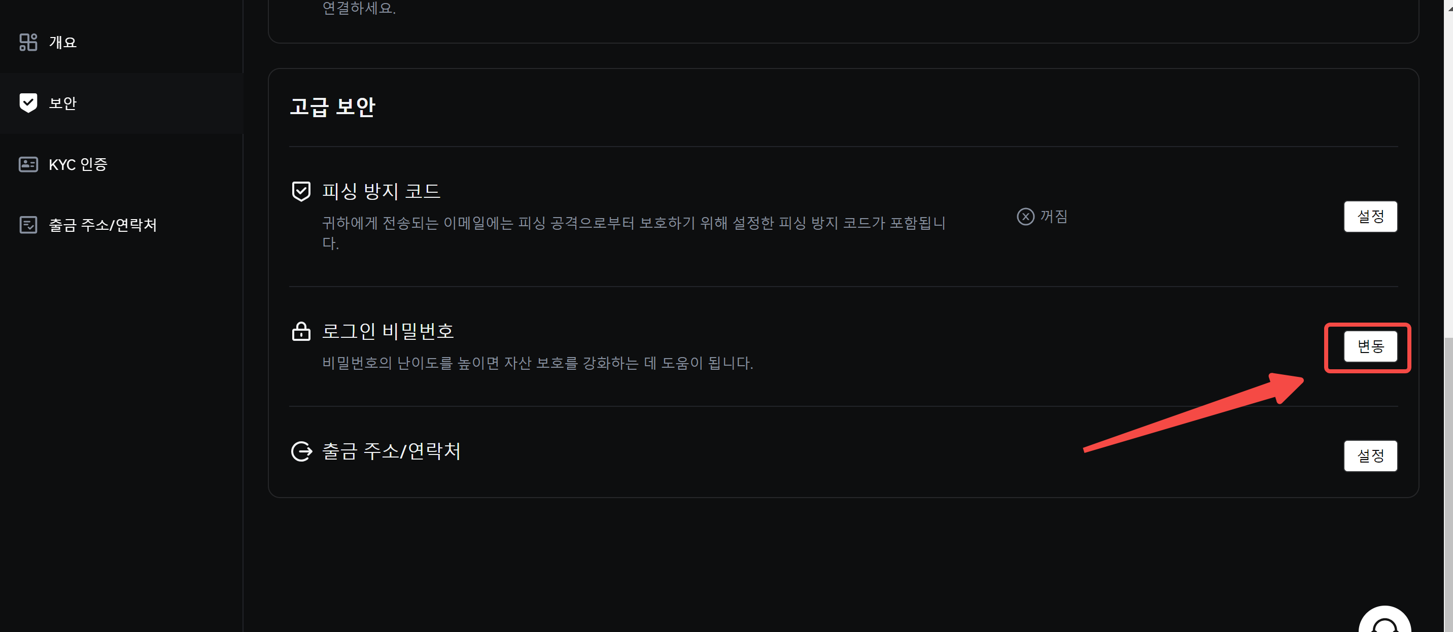 로그인 비밀번호를 변경하는 방법?