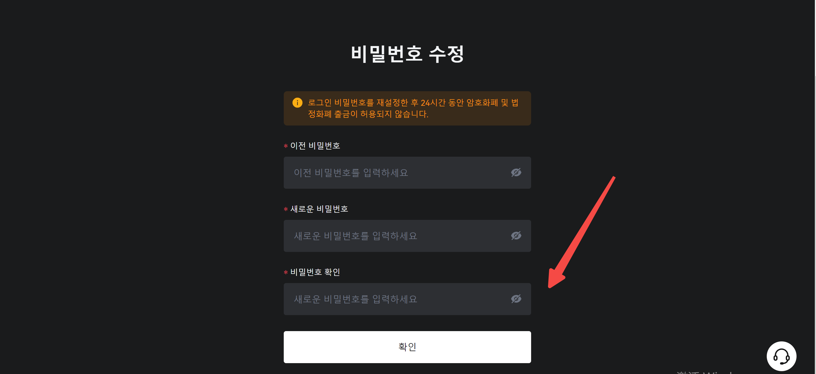 다. 기존 비밀번호를 입력하고, 새 비밀번호를 두 번 입력하세요. 변경 프로세스를 완료하려면 '확인'을 클릭하세요.