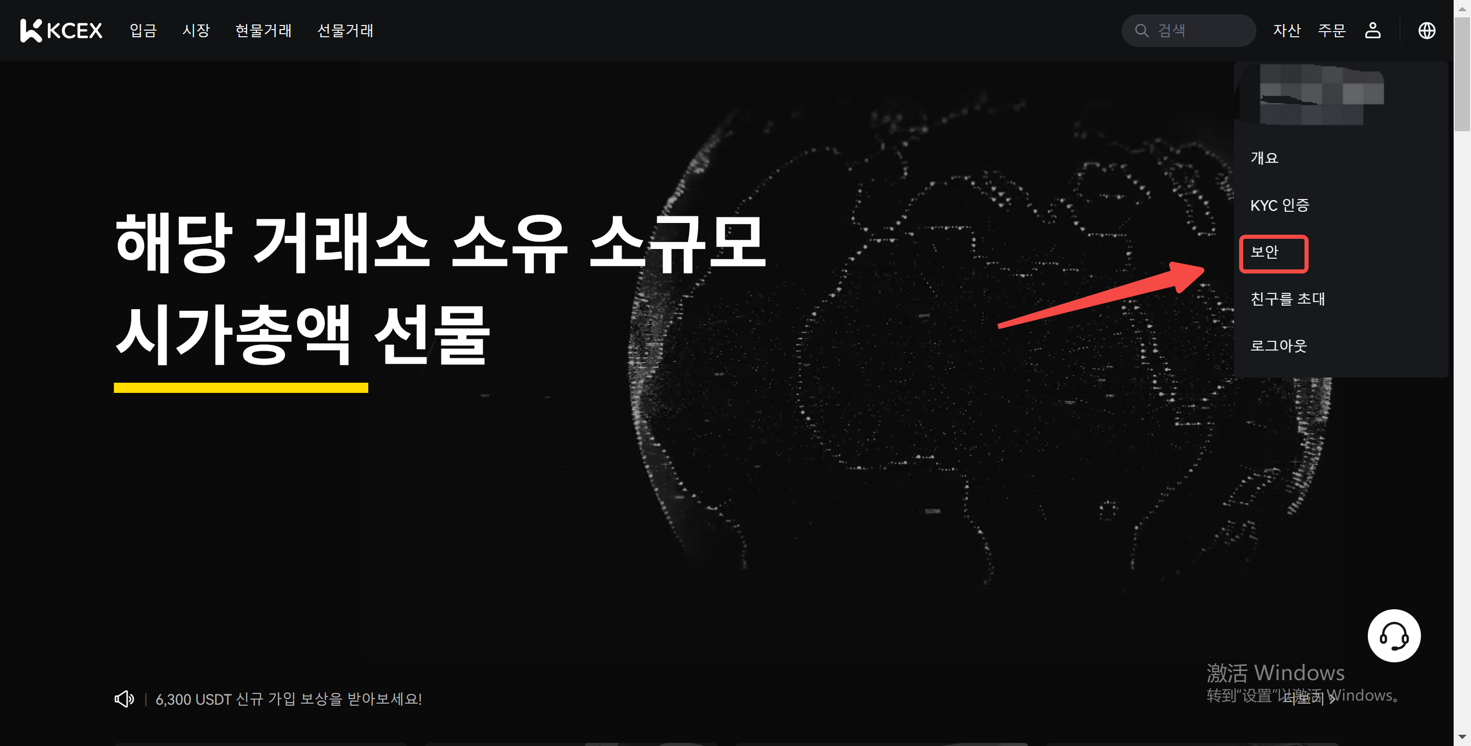 1. KCEX 공시 홈페이지에 접속 후 상단 메뉴의 프로필- [보안]을 클릭하세요.