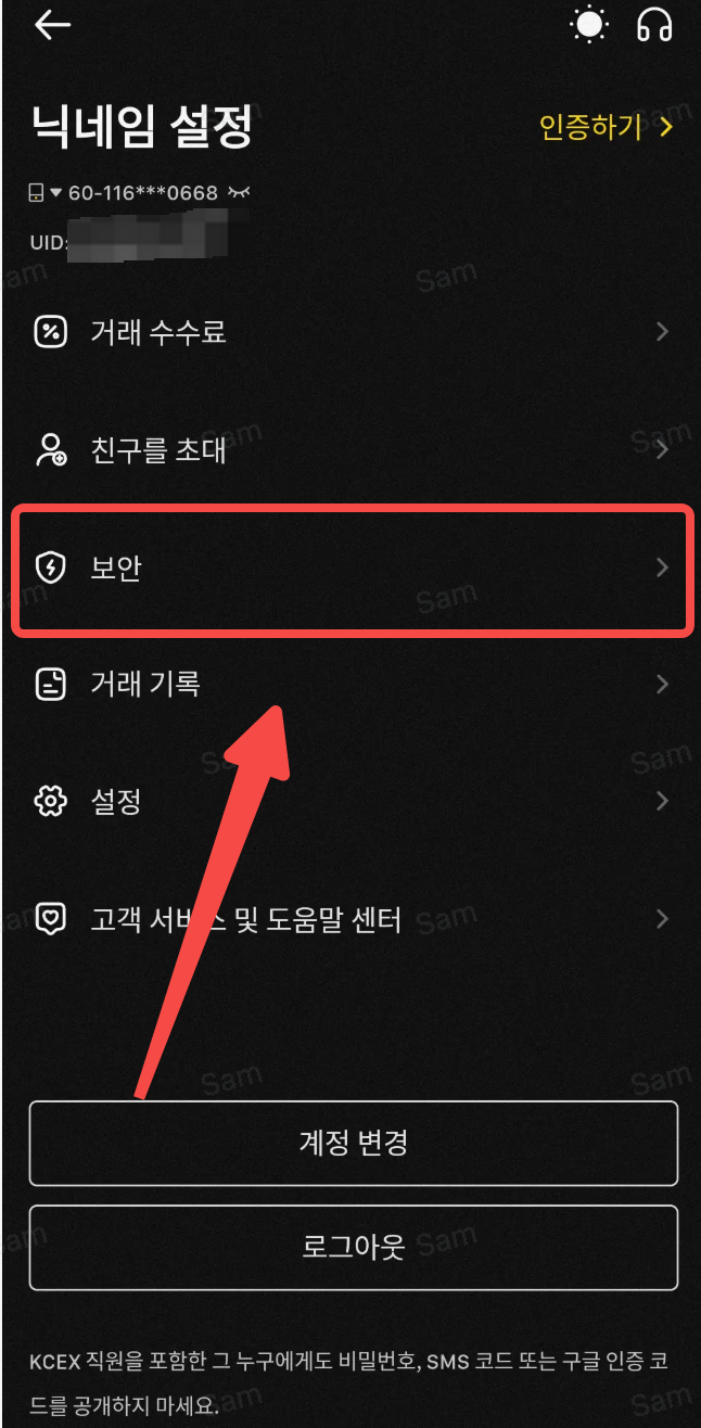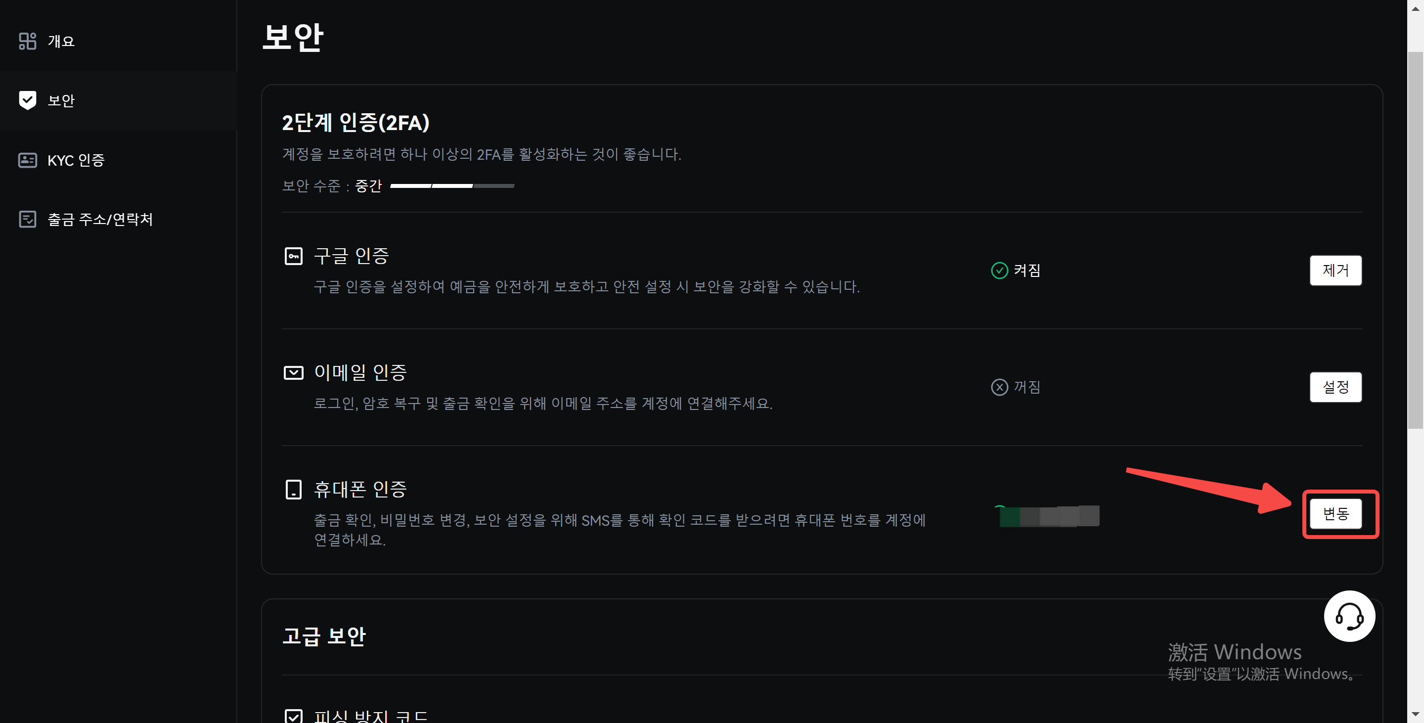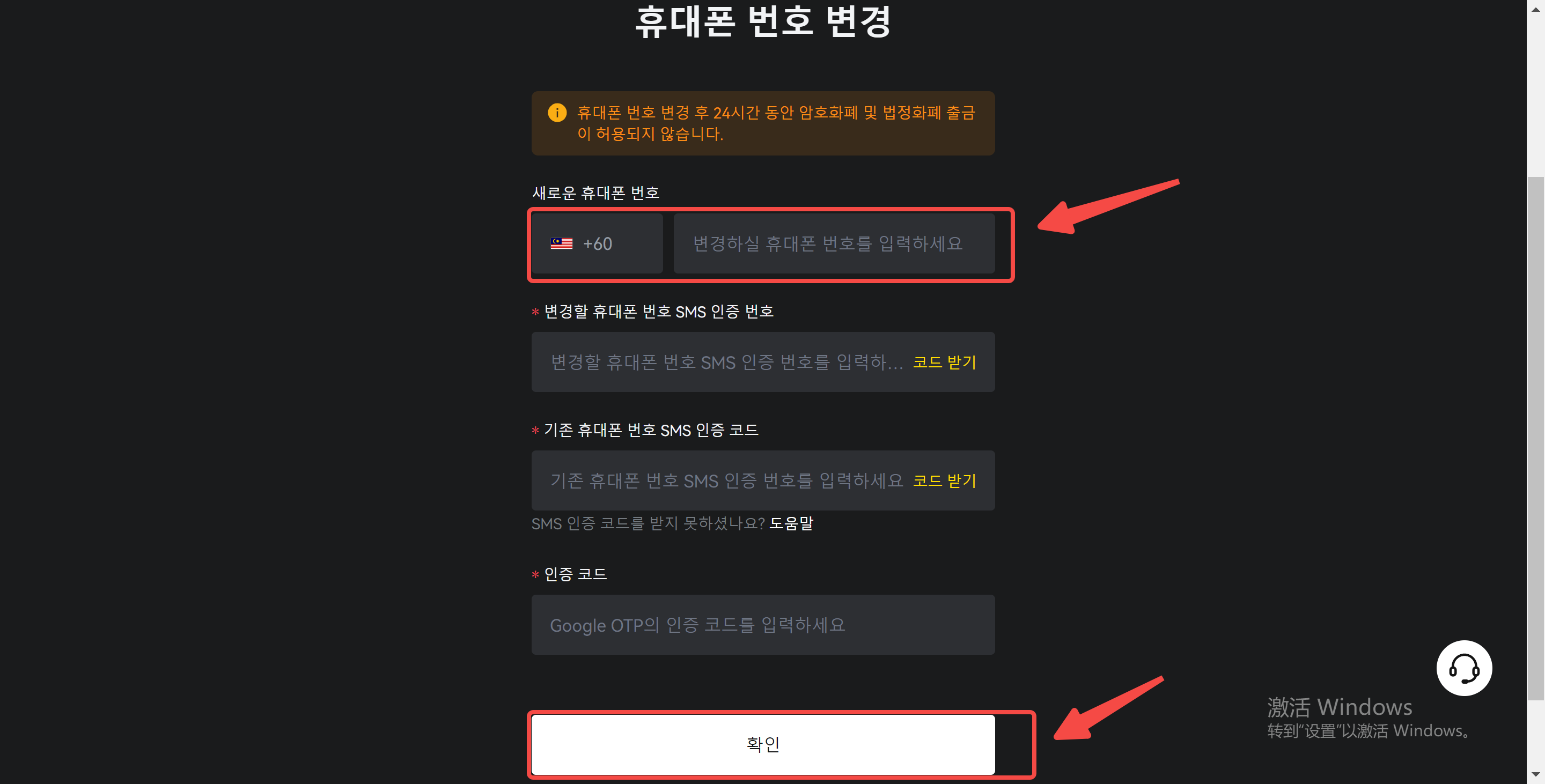 2. 휴대폰 번호를 인증하여 [변경]을 클릭하세요.