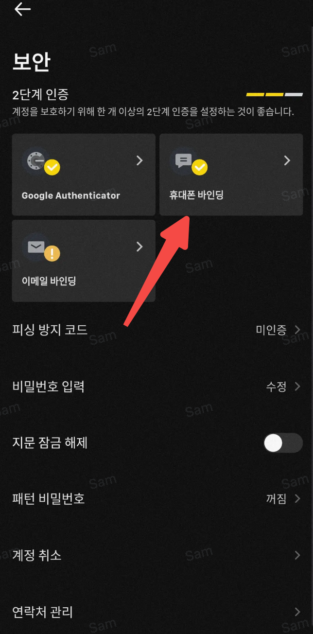 3. 보안 센터에서 [휴대폰 연동]을 클릭합니다.