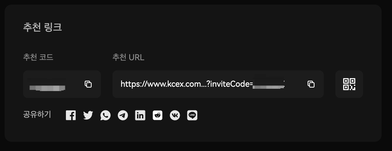 KCEX에서 각 사용자는 고유한 초대 코드를 받게 됩니다. 기본 초대 링크나 독점 초대 코드를 사용하여 친구를 우리 플랫폼에 초대할 수 있습니다. 또한, 쉽게 공유할 수 있도록 고유한 QR 코드를 생성할 수 있습니다. 이 코드를 스캔하면 친구들이 쉽게 가입하여 함께 즐거운 거래를 즐길 수 있습니다.