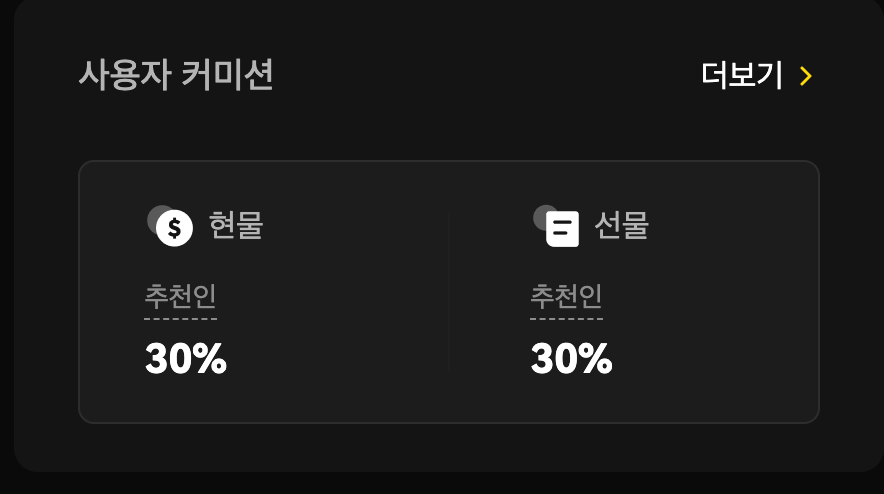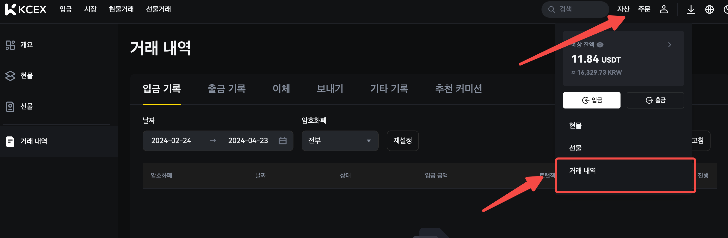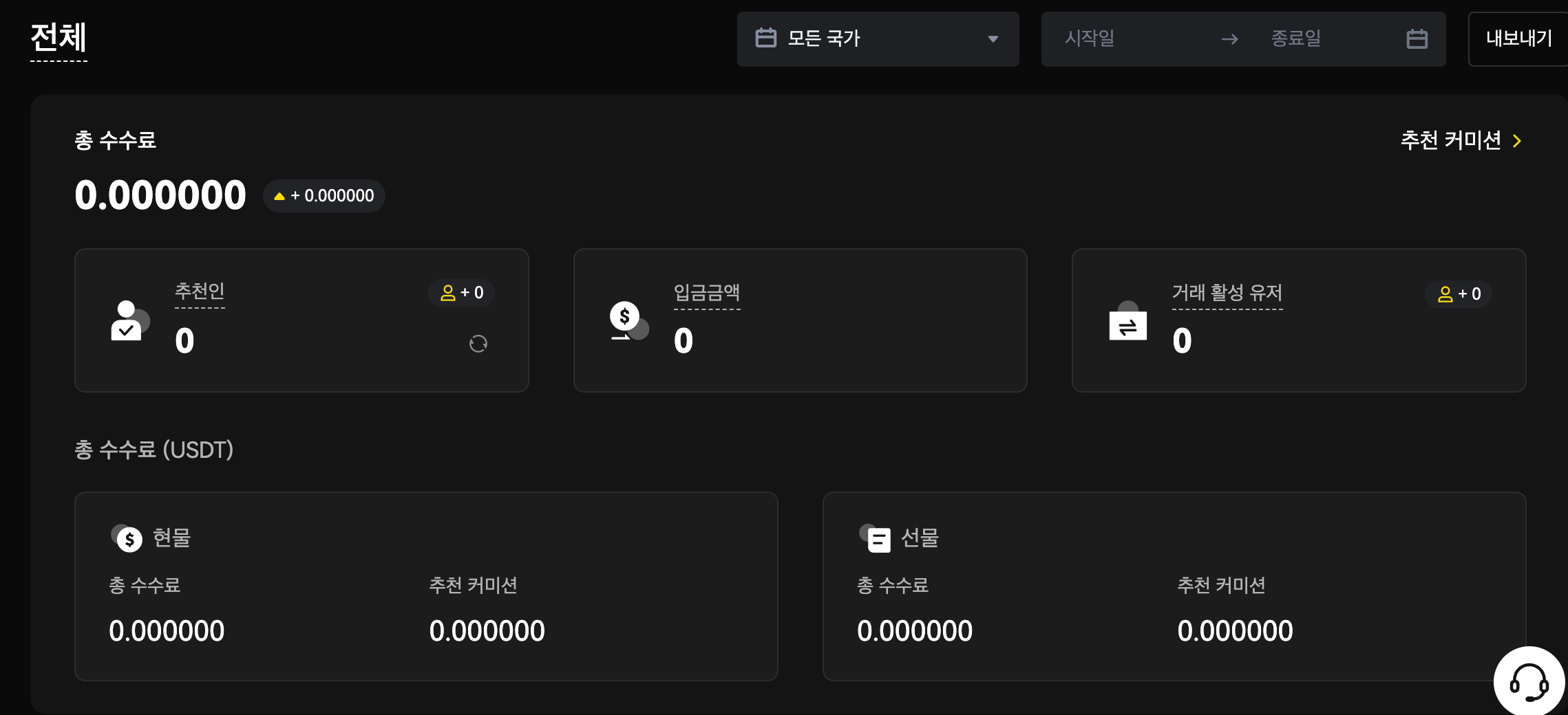 또한, "지갑" - "거래 내역" - "수수료 기록"을 통해 커미션 흐름을 확인할 수 있습니다.